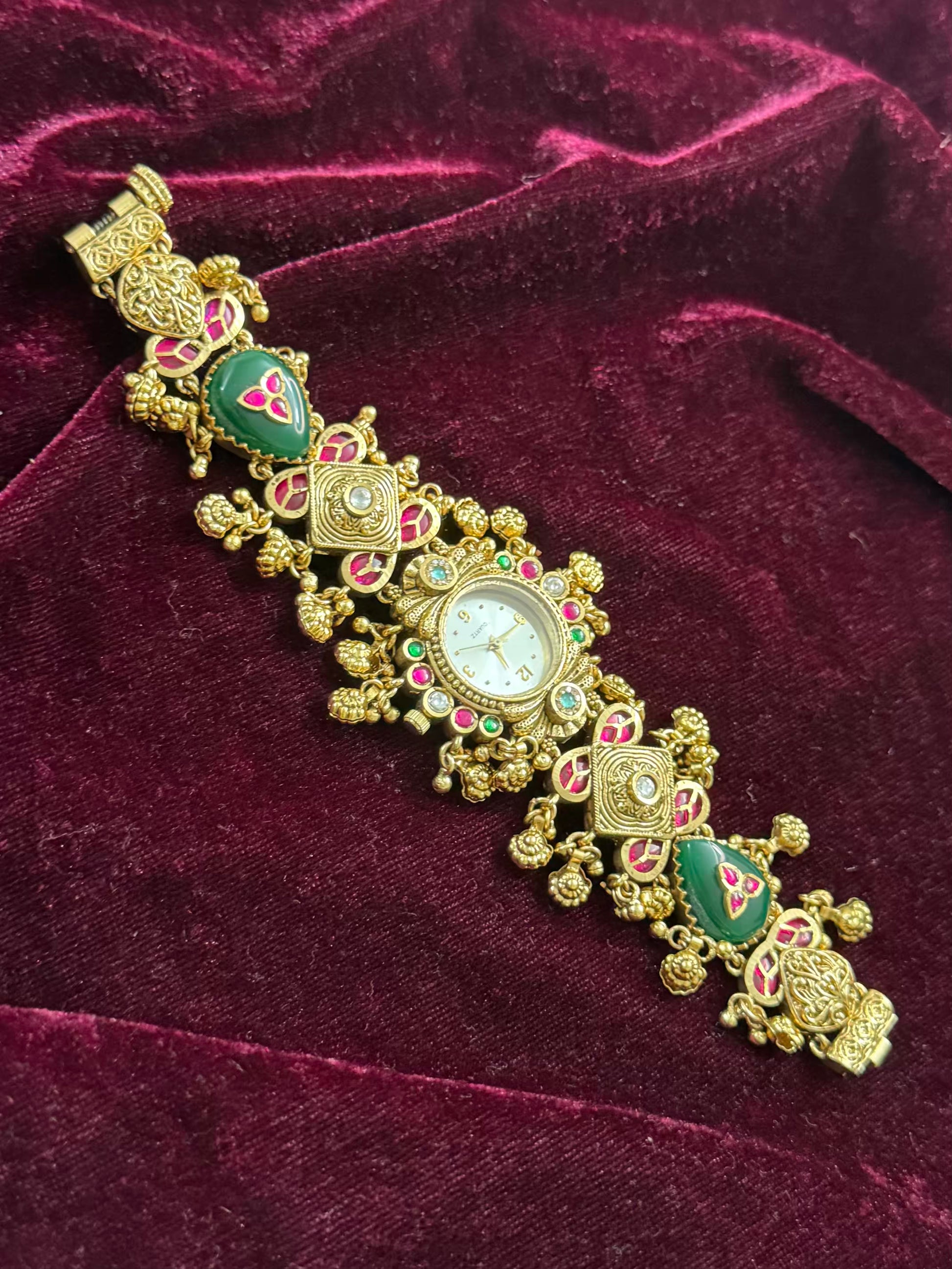 Kundan Premium Gold Maharani Watch Design Heritage Bracelet
