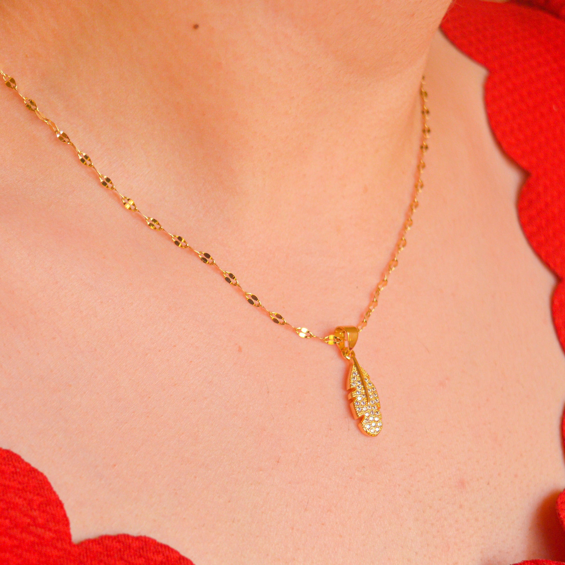 Material - Chain is made of Stainless Steel ( 15-17inches length) , Pendant is made of Anti Tarnish Alloy and Stones are Cubic Zirconia quality. Necklace is Gold Color Plated.