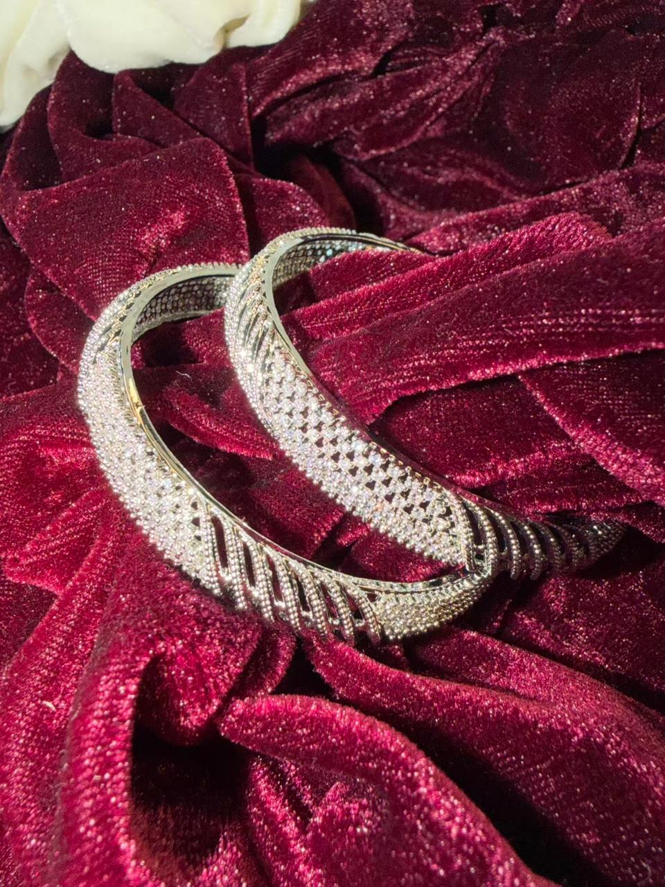 Leaf Pattern Silver Plated Diamond Designer Kada Bangles