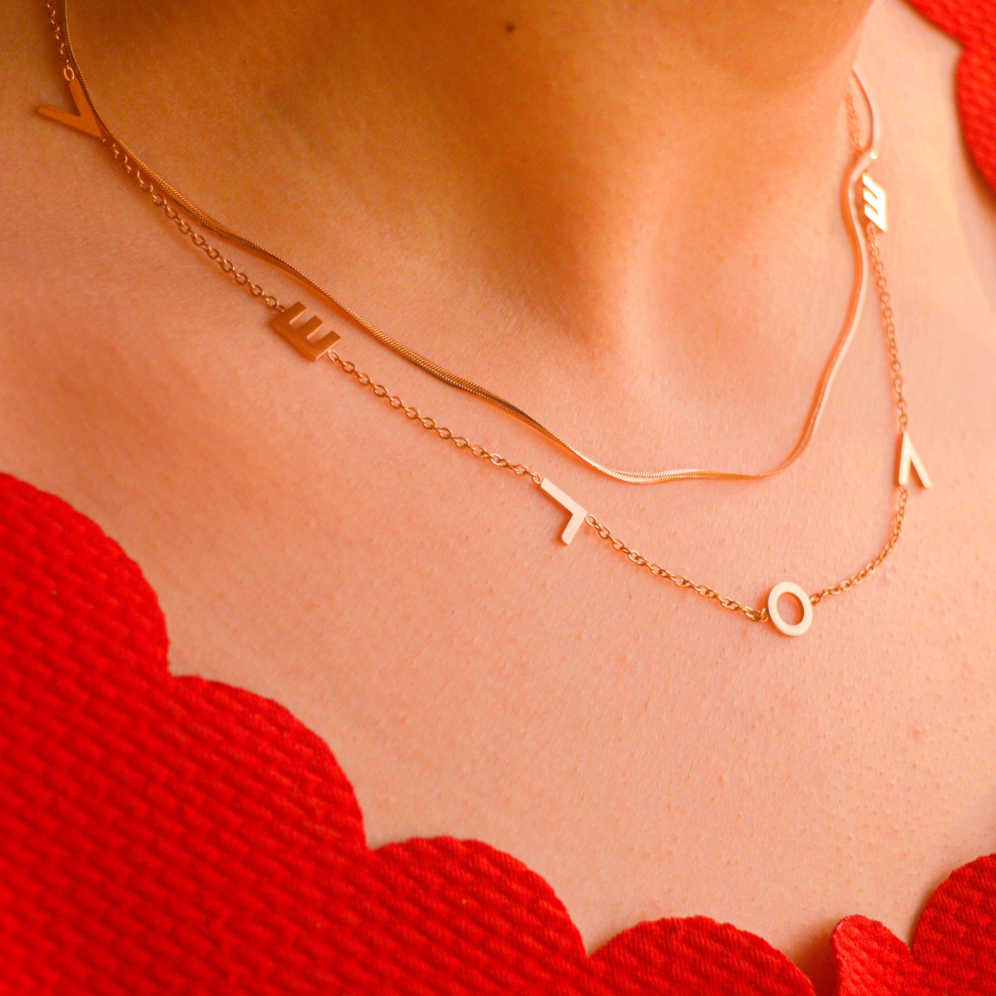 Love Letters Layered Snake Chain Necklace - Rose Gold