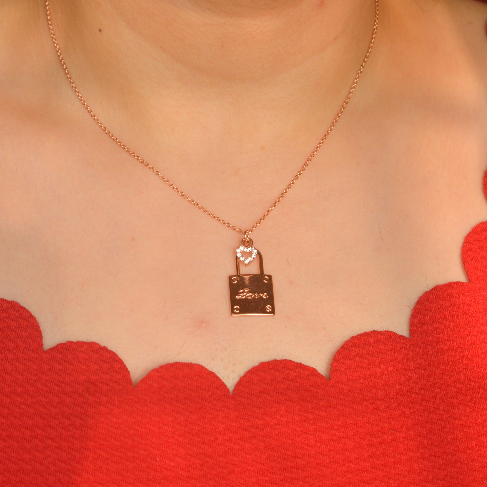 Material - Chain is made of Stainless Steel ( 15-17inches length) , Pendant is made of Anti Tarnish Alloy and Stones are Cubic Zirconia quality. Necklace is Rose Gold Color Plated.