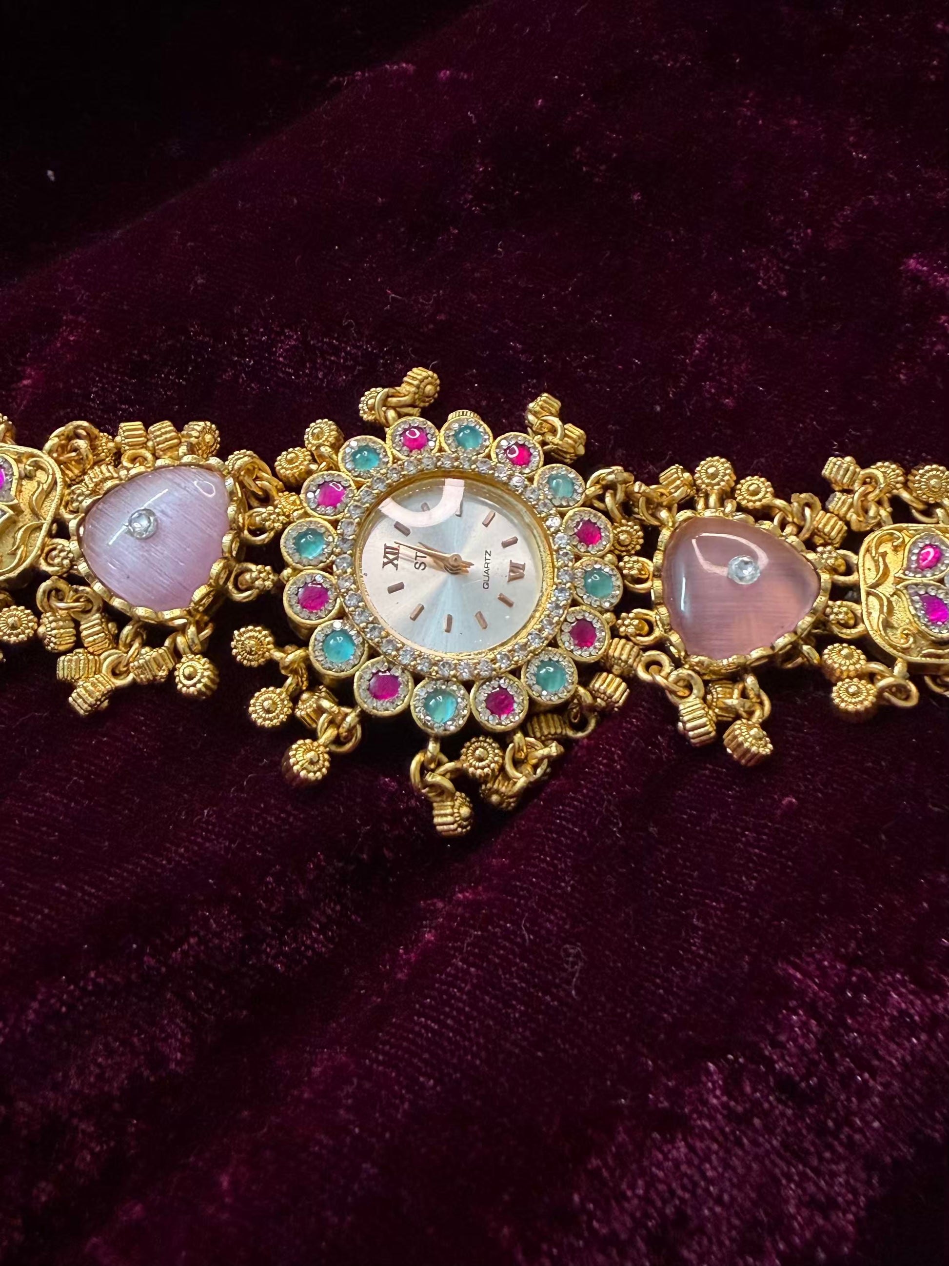 Pink Premium Gold Rajwadi Gold Plated Heritage Maharani Watch