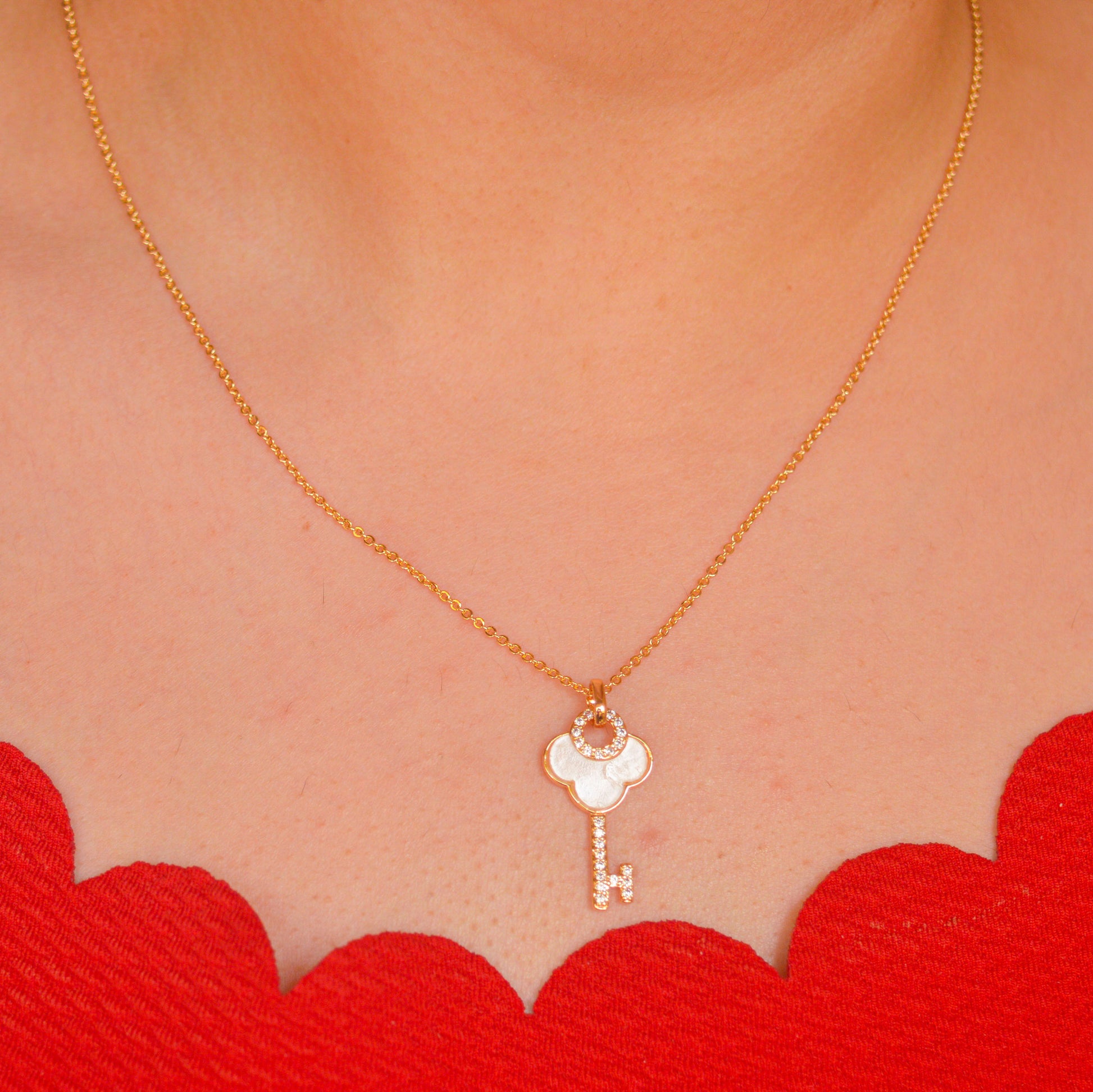 Material - Chain is made of Stainless Steel ( 15-17inches length) , Pendant is made of Anti Tarnish Alloy and Stones are Cubic Zirconia quality. Necklace is Gold Color Plated.