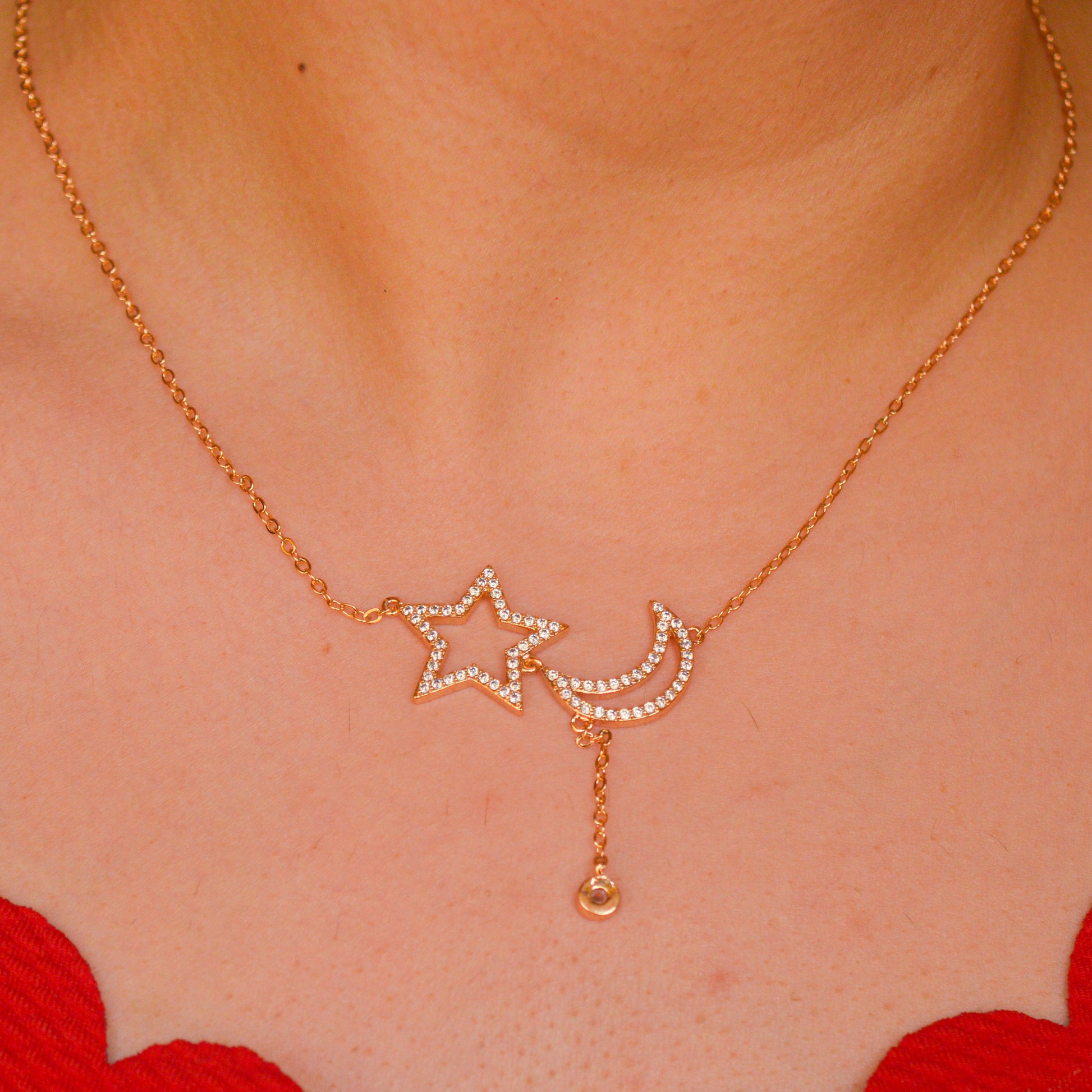 Material - Chain is made of Stainless Steel ( 15-17inches length) , Pendant is made of Anti Tarnish Alloy and Stones are Cubic Zirconia quality. Necklace is Rose Gold Color Plated.