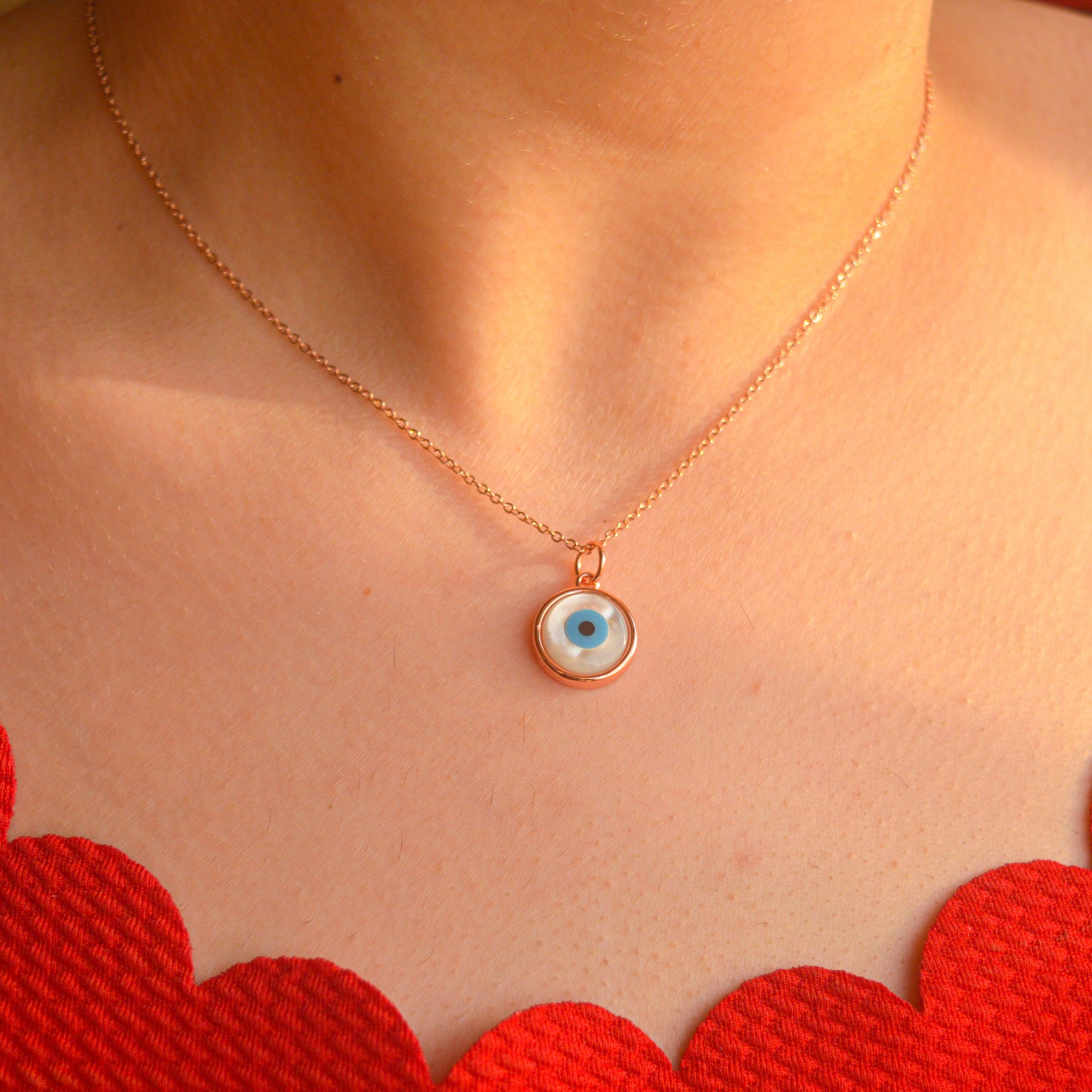 Mother of Pearl Simple Evil Eye Necklace ( Rose Gold / Gold / Silver )