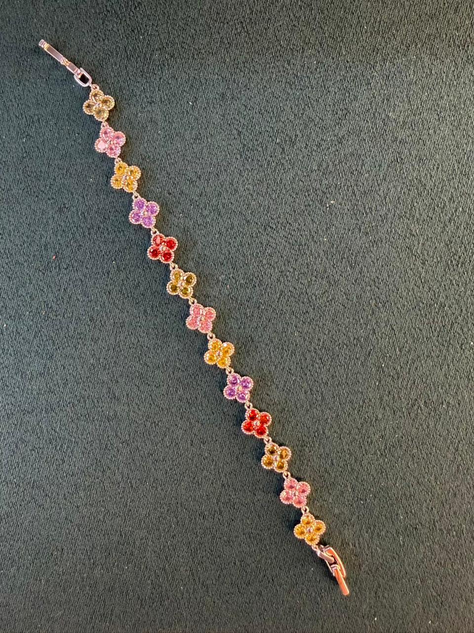 Multicoloured Flower Shaped Silver Plated Tennis Bracelet