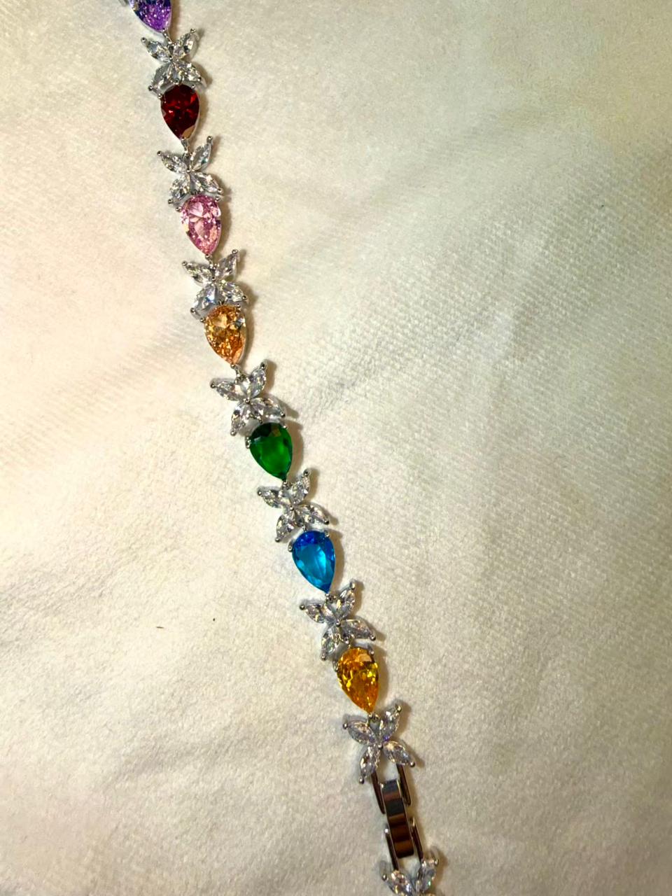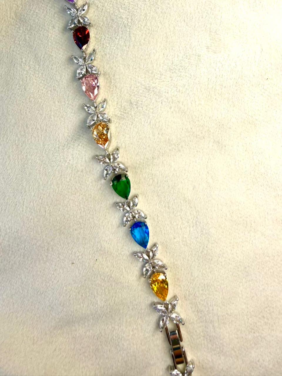 Multicoloured Geometric Drop Shaped Silver Plated Tennis Bracelet