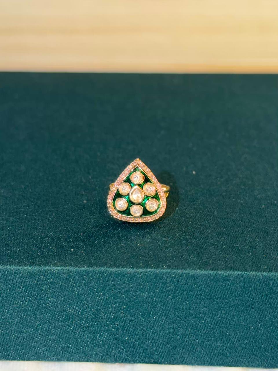Emerald Green Colour Drop Shape Gold Plated Ring Size Adjustable