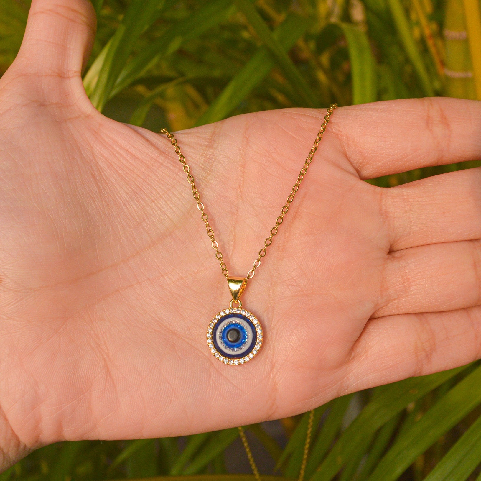Material - Chain is made of Stainless Steel ( 15-17inches length) , Pendant is made of Anti Tarnish Alloy and Stones are Cubic Zirconia quality.