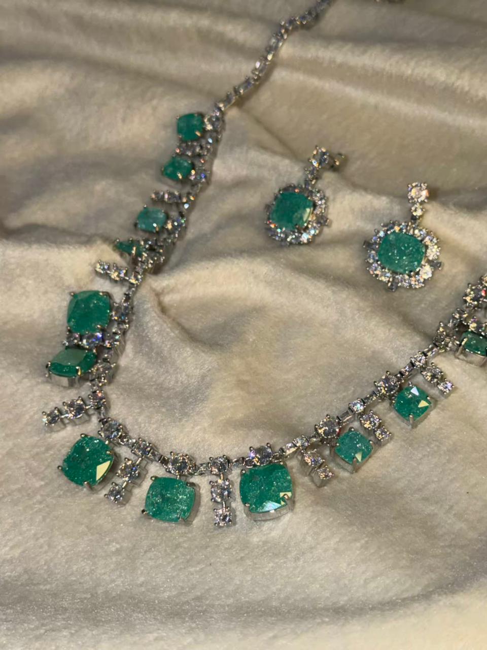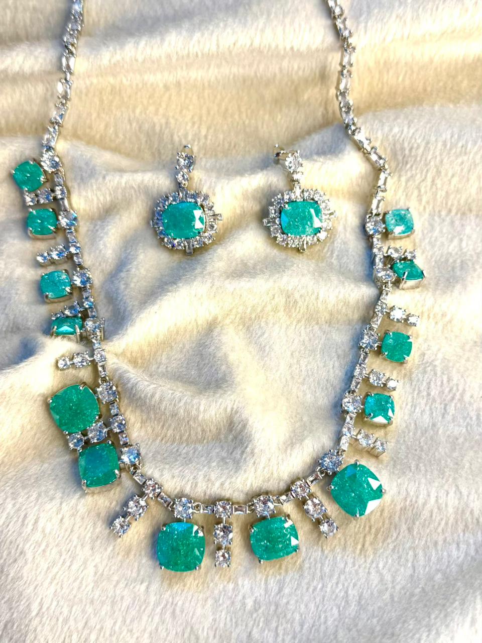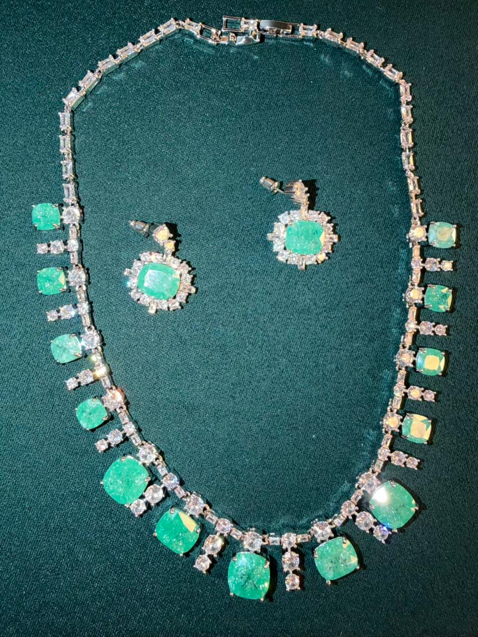Ocean Diamond Rhodium Silver Necklace Set with Earrings
