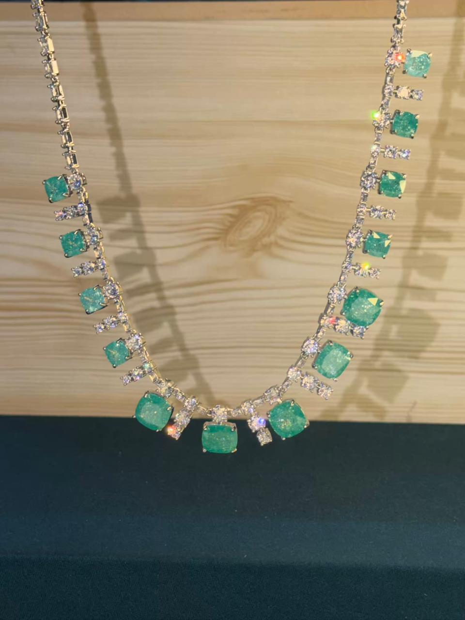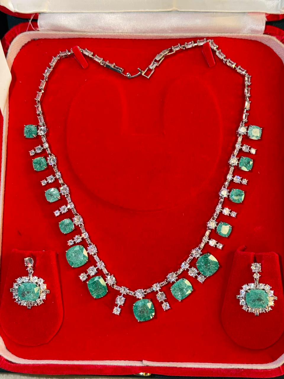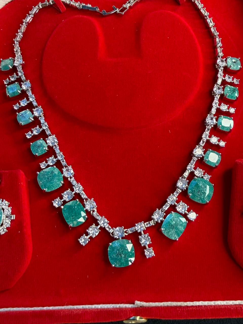 Ocean Diamond Rhodium Silver Necklace Set with Earrings