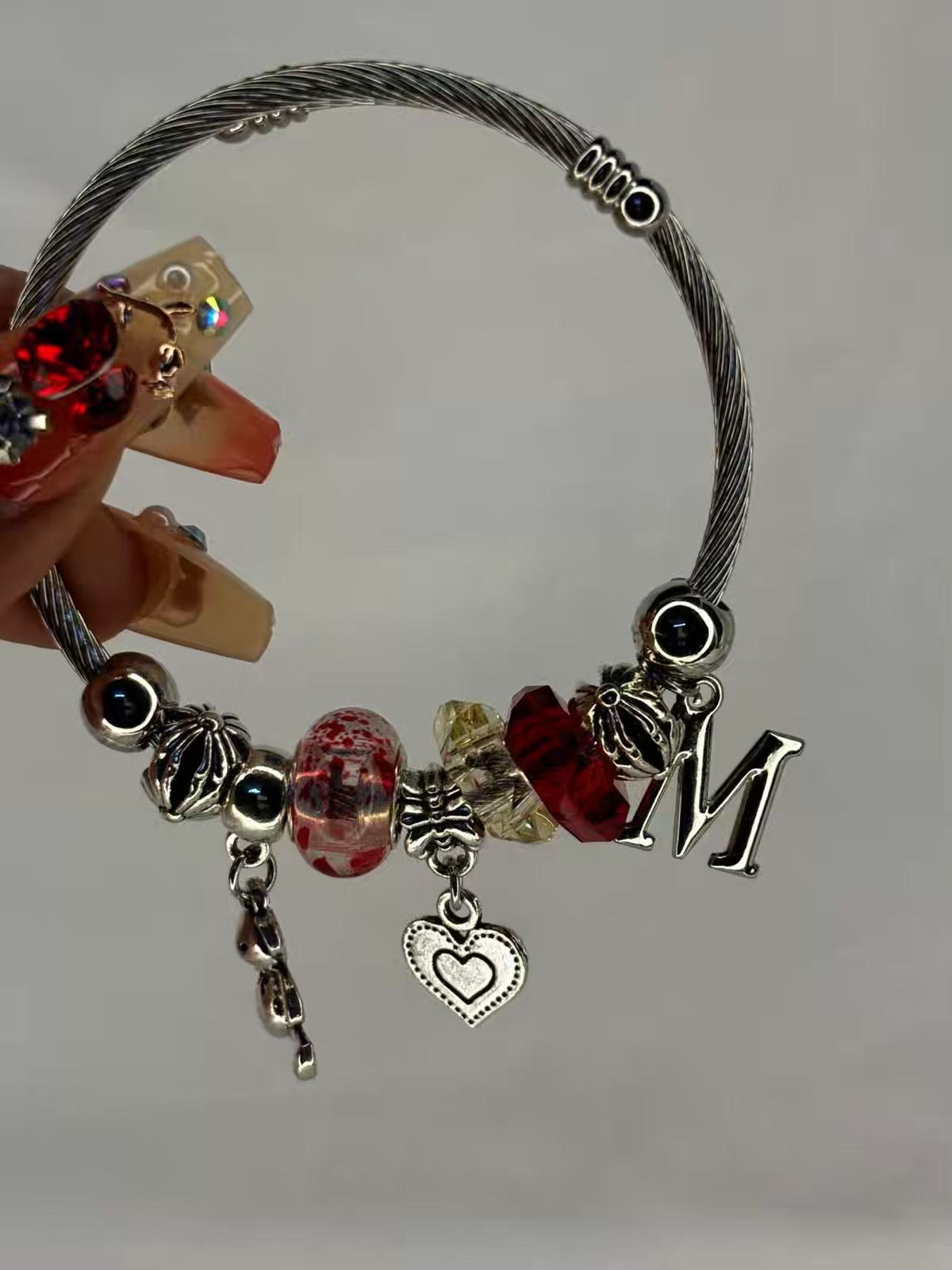 Pandora Charms Heart Bracelet With Customised Initial ( Silver )