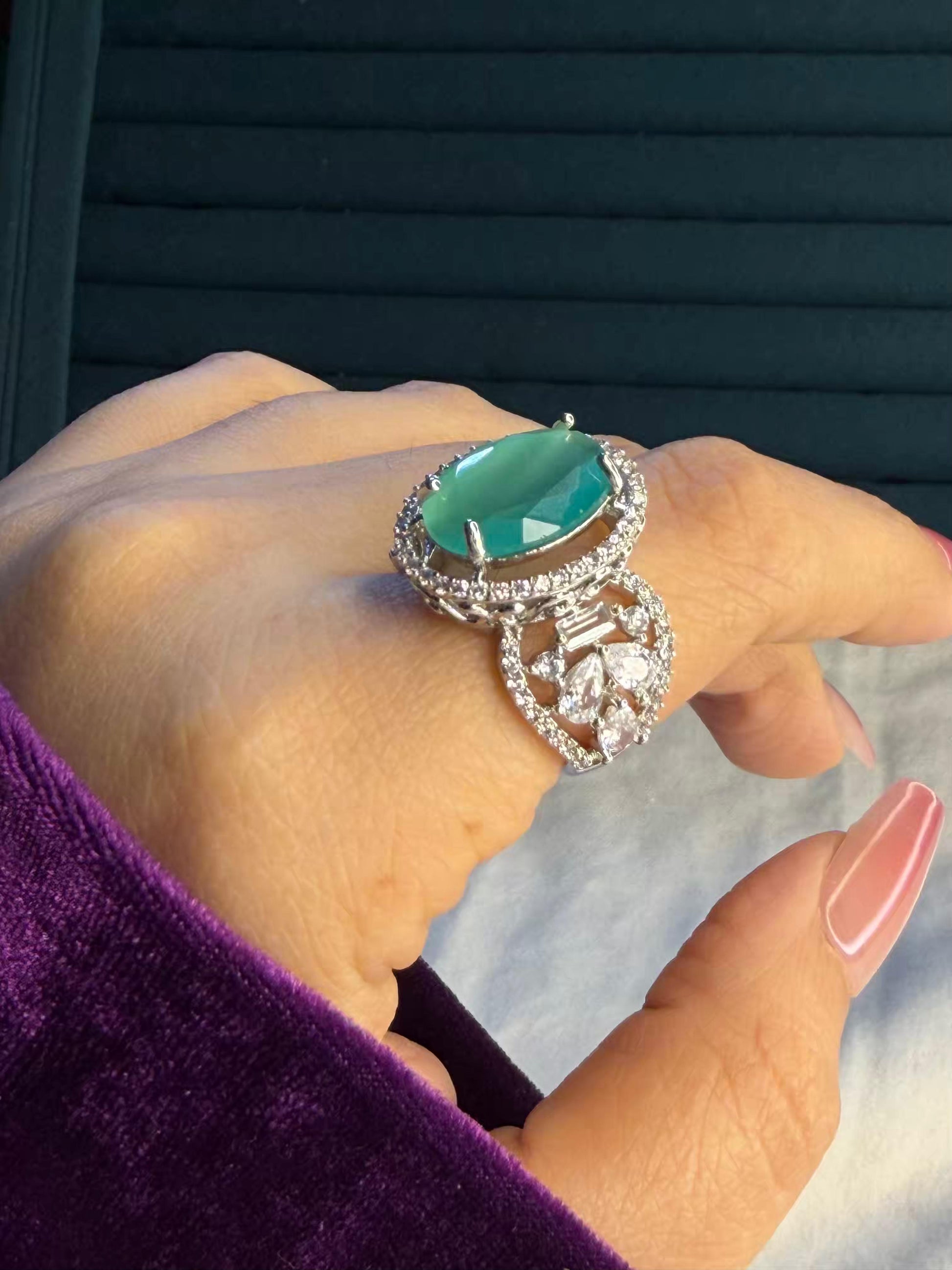 Pastel Green Empress Silver Plated Premium Ring (Adjustable)