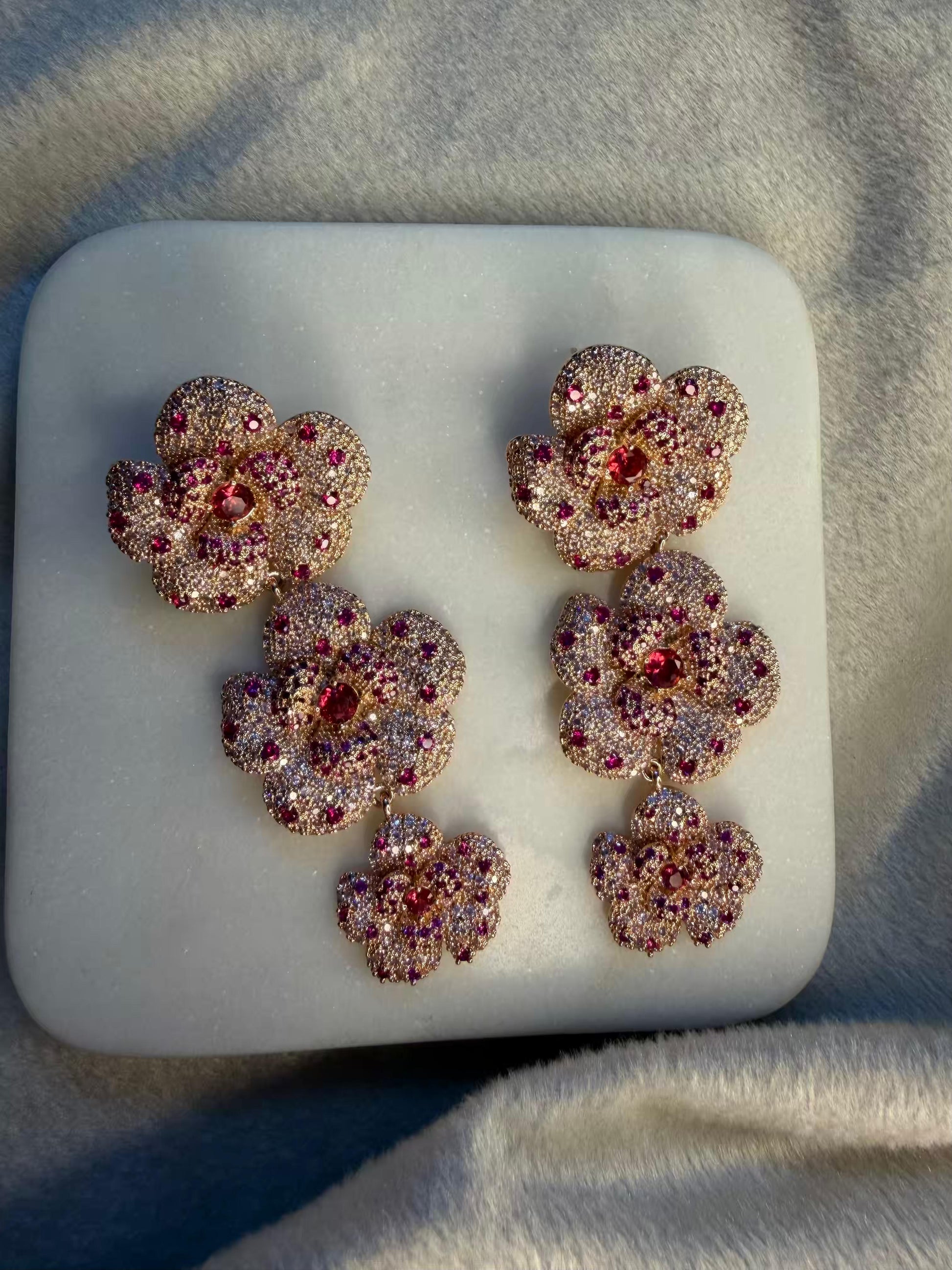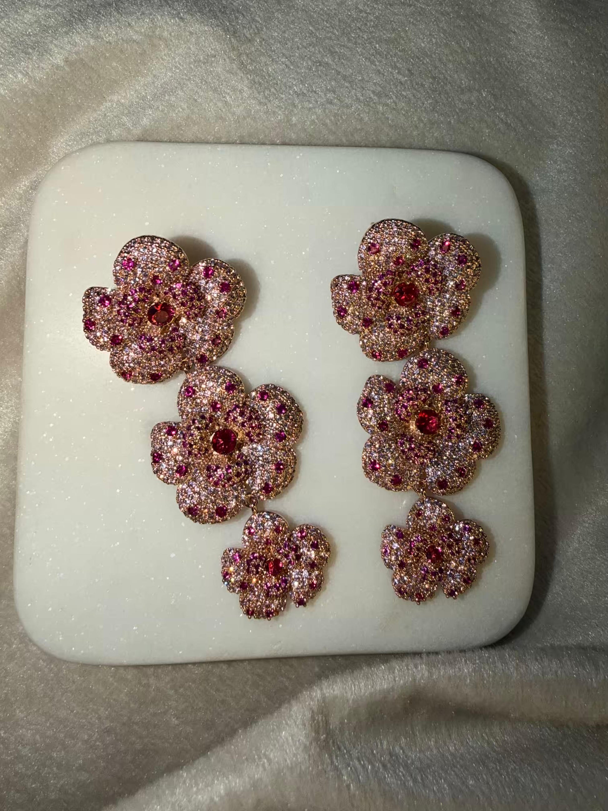 Pink Ruby Crystal Luxury Party Wedding Rhodium Gold Plating Earrings