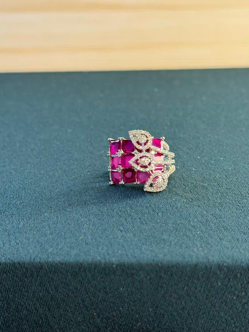 Pink Stone Statement Design Silver Plated Ring Size Adjustable