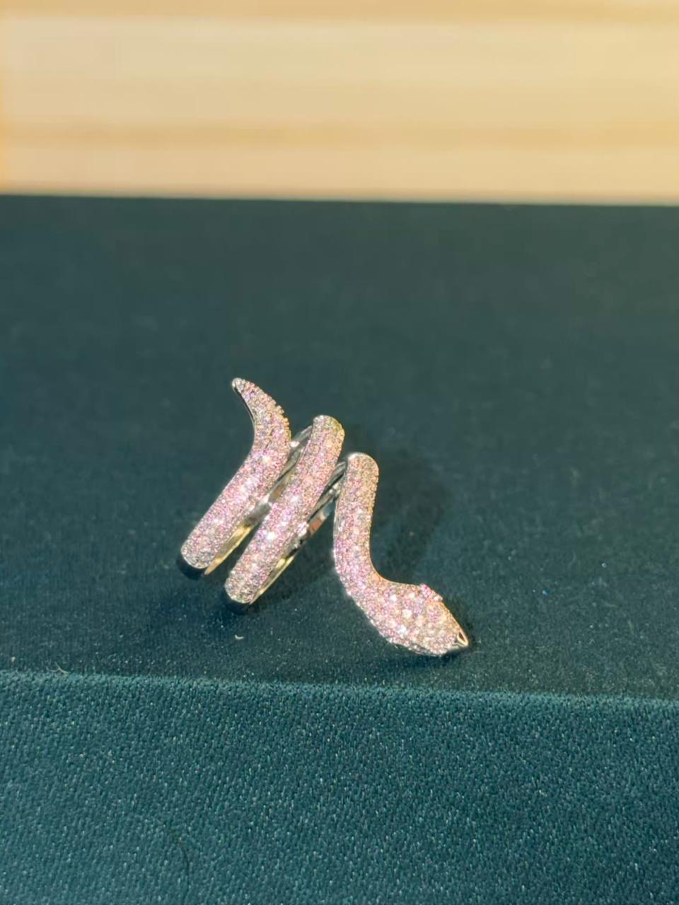 Pink Stone Wrap Snake Design Silver Plated Ring Size Adjustable