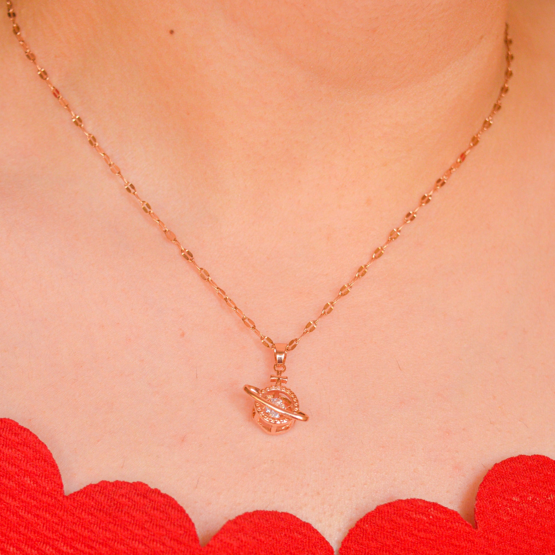 Planet Diamond Necklace - Rose Gold