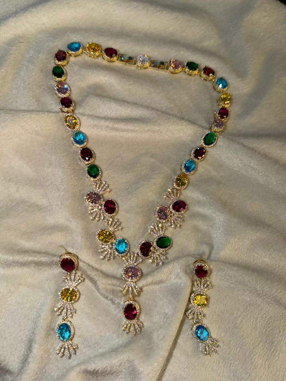 Premium Multicoloured Doublet Stone Luxury Necklace Set in 18k Thick Gold Plating