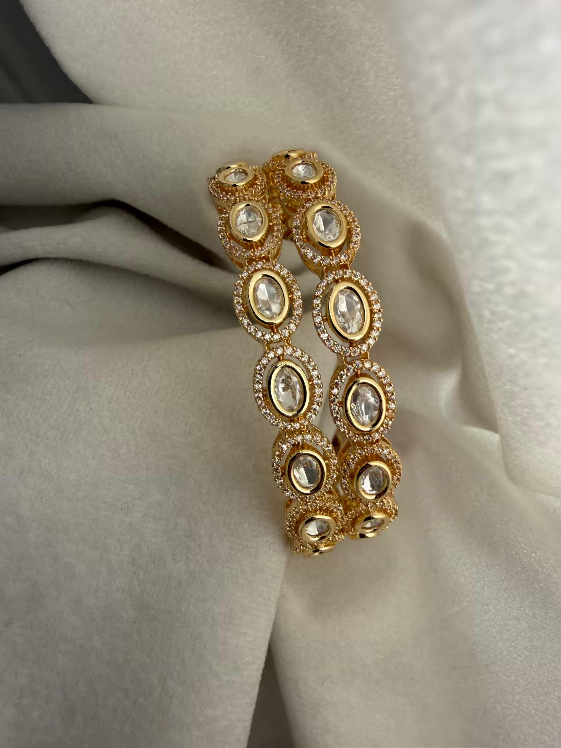 Premium Oval Kundan Stone Bangles 2.6Size