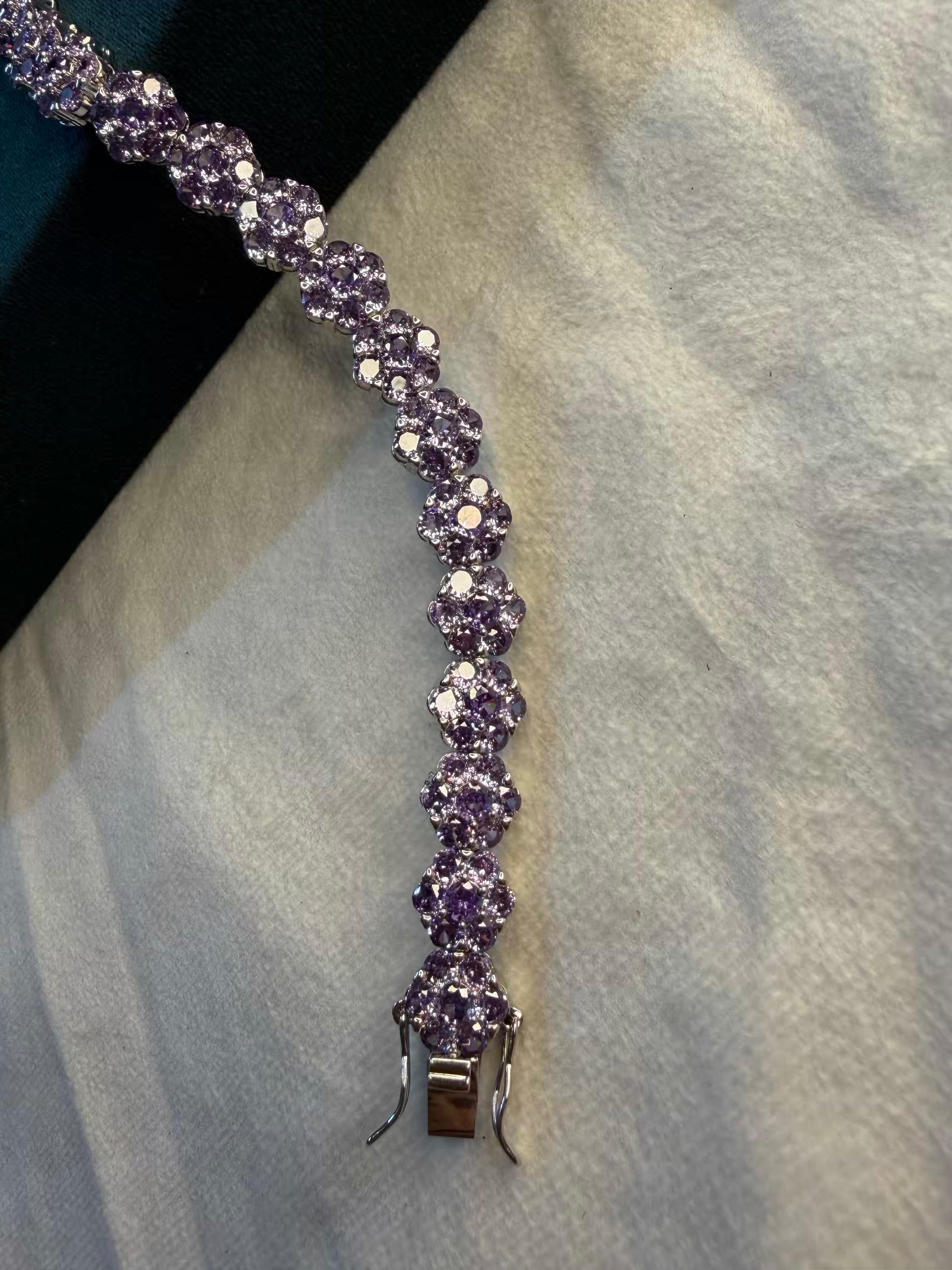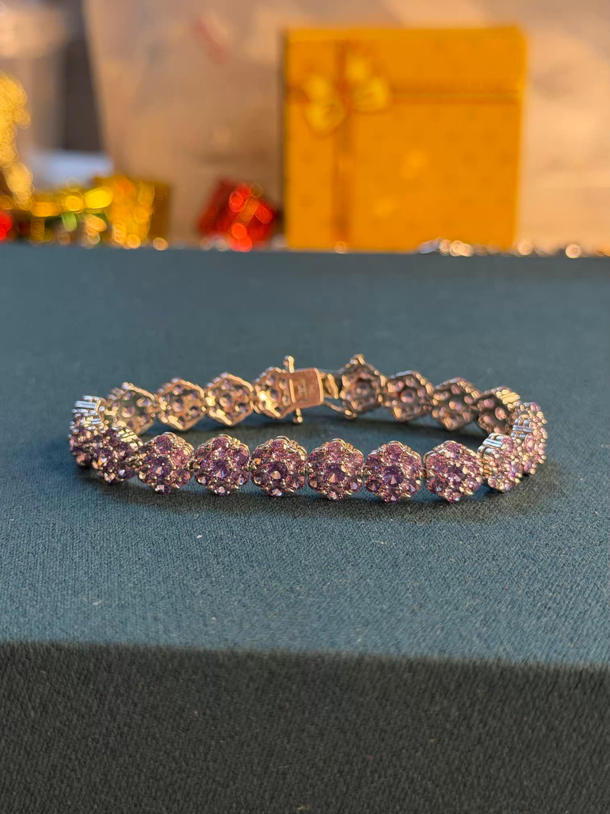 Purple Floral Cluster Silver Plated Tennis Bracelet