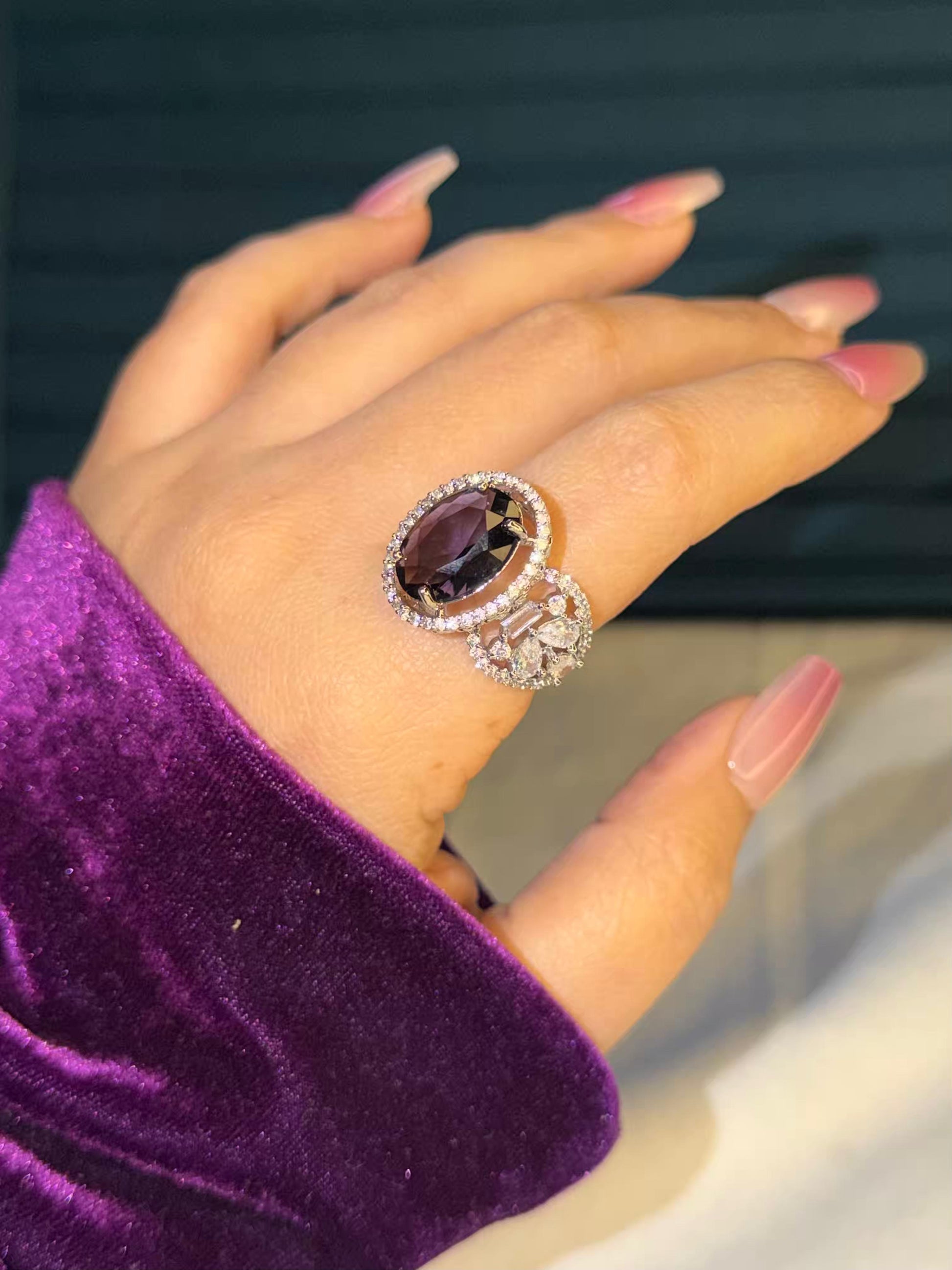 Purple Oval Stone Silver Plated Premium Ring (Adjustable)