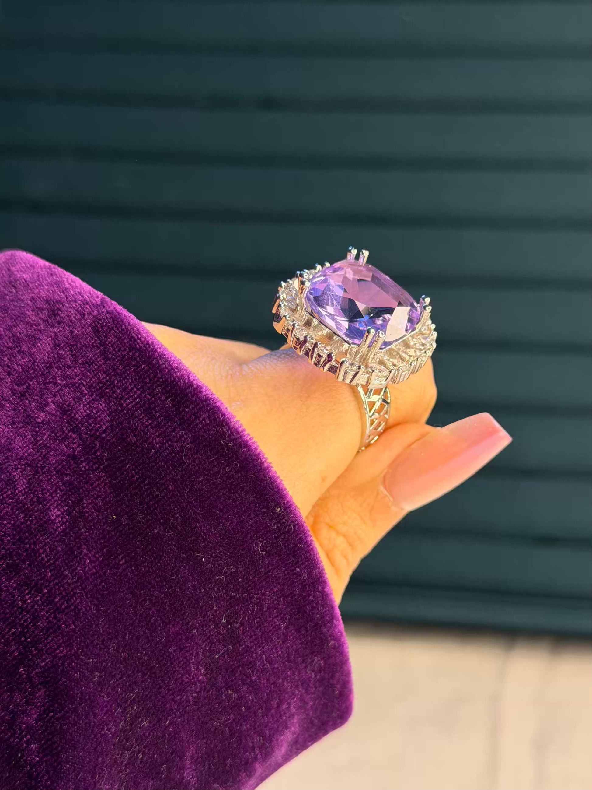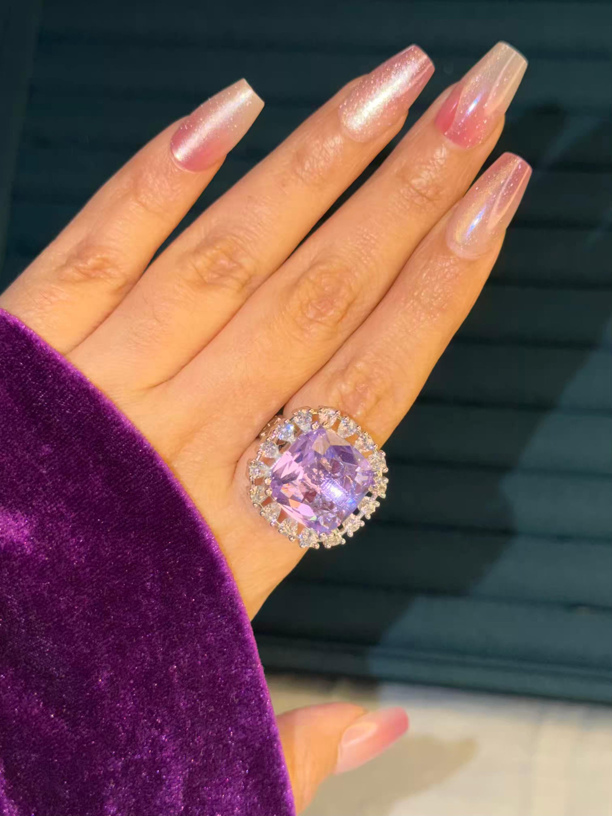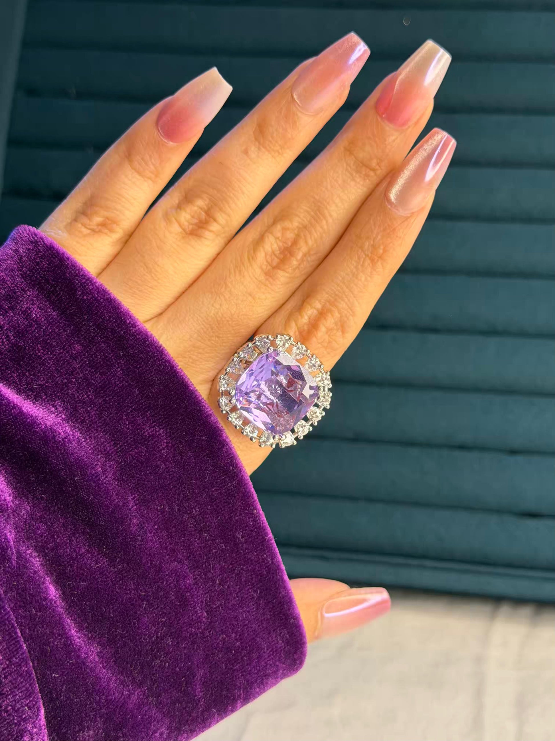 Purple Square Shape Stone Silver Plated Premium Ring (Adjustable)