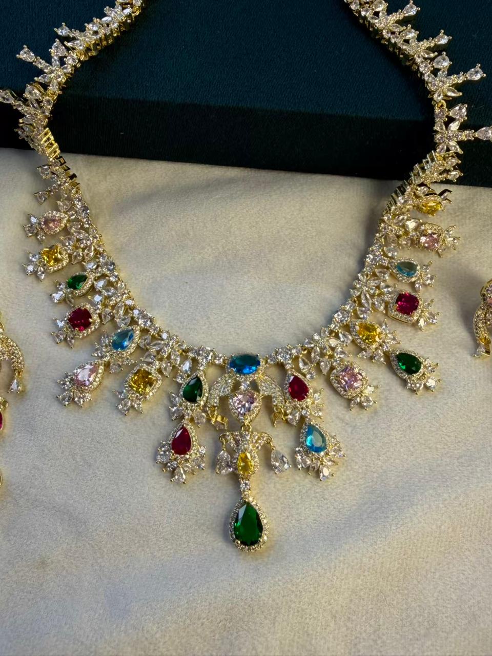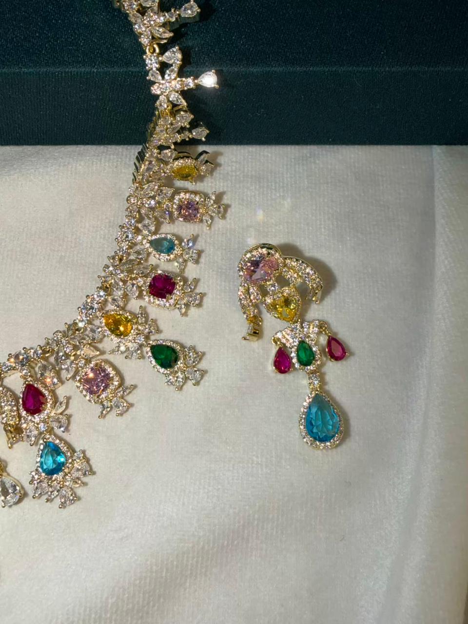 Queen Diamonds Necklace set in Rhodium Gold