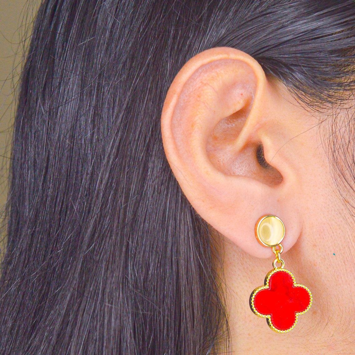 Red Clover Earrings - Gold