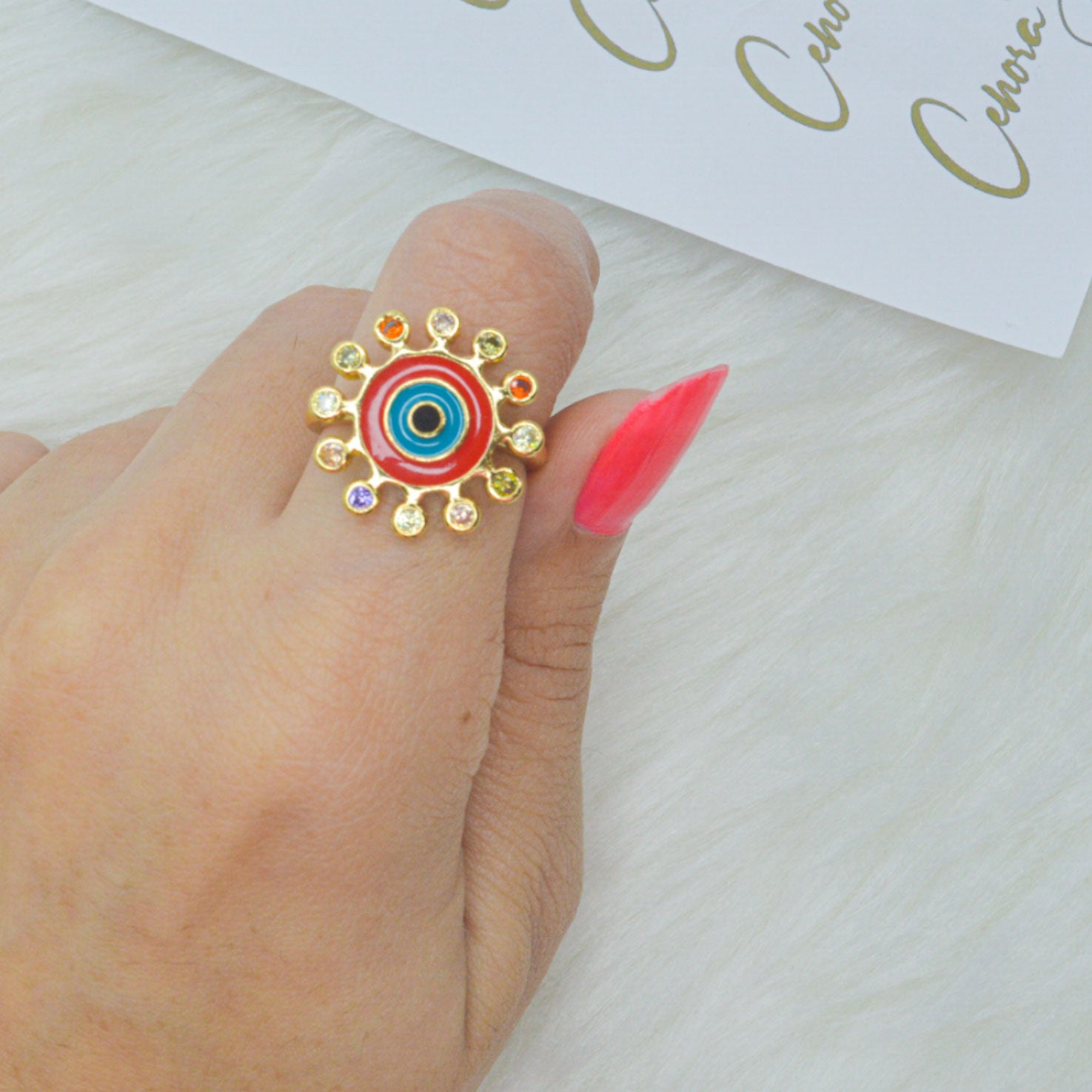 Red Star Spikes Statement Evil Eye Ring