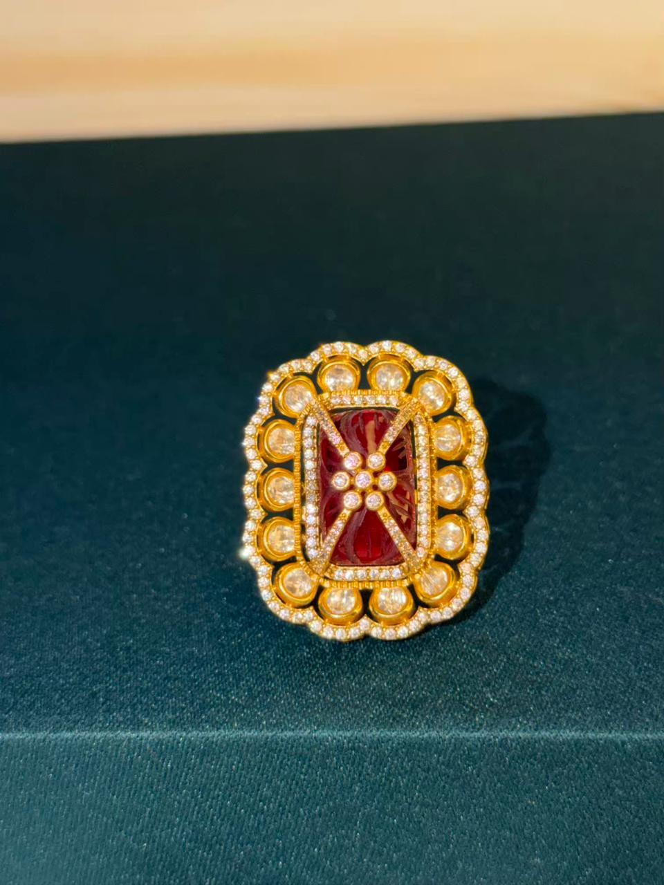 Ruby Red Moissanite Gold Cocktail Adjustable Ring