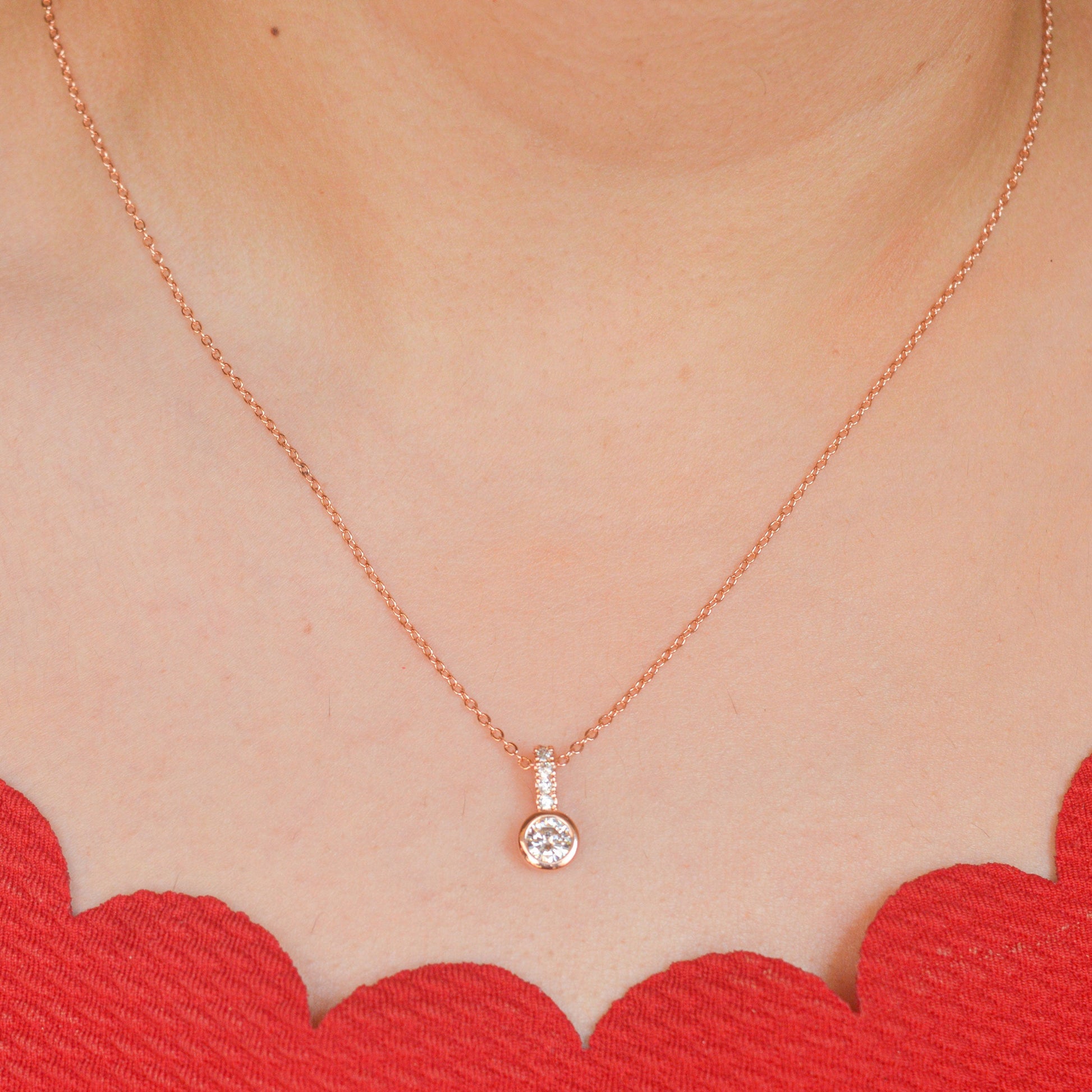 Material - Chain is made of Stainless Steel ( 15-17inches length) , Pendant is made of Anti Tarnish Alloy and Stones are Cubic Zirconia quality. Necklace is Rose Gold Color Plated.