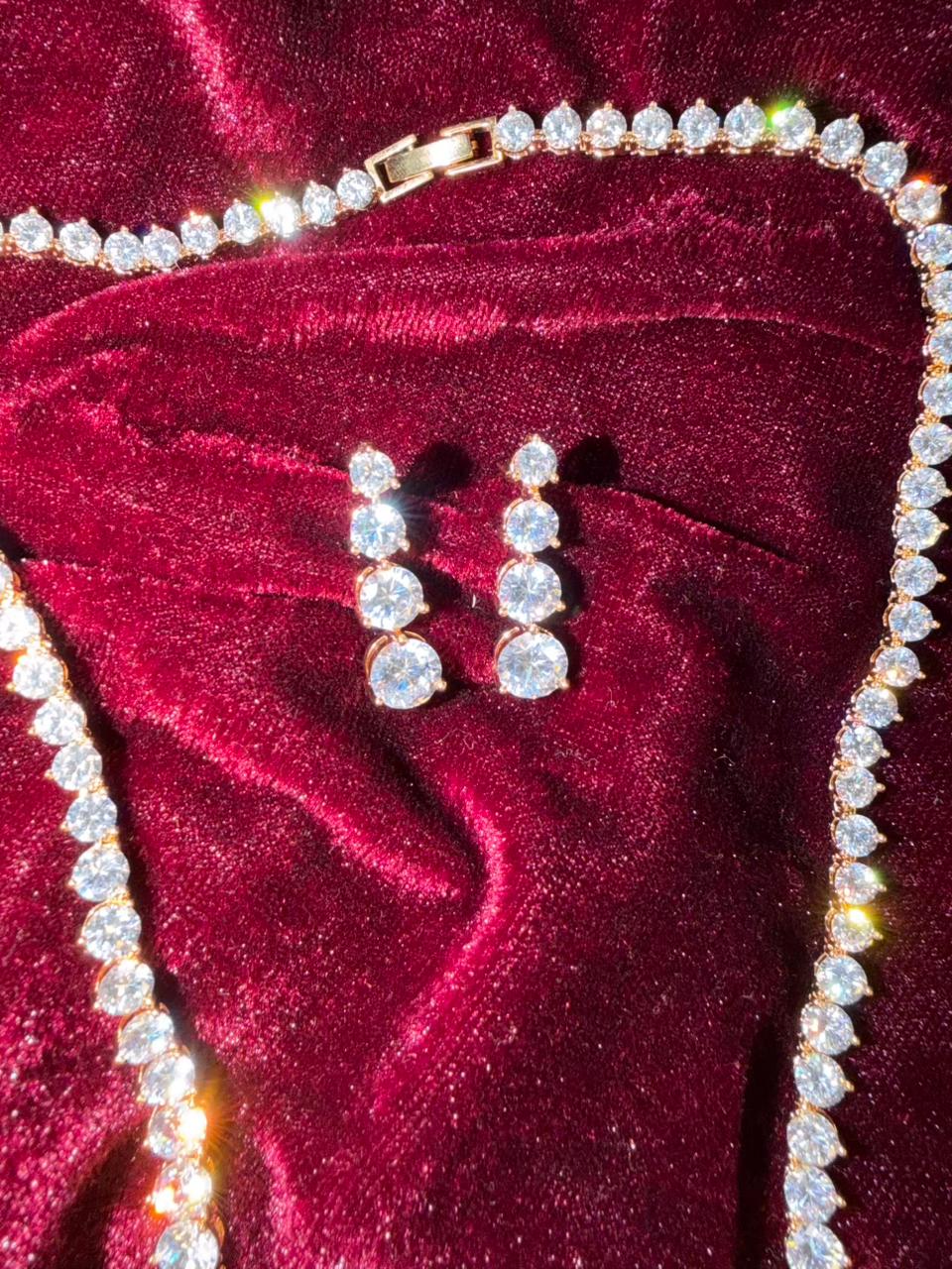 Halo-set Sparkling White Crystal Gold-Plated Necklace Set
