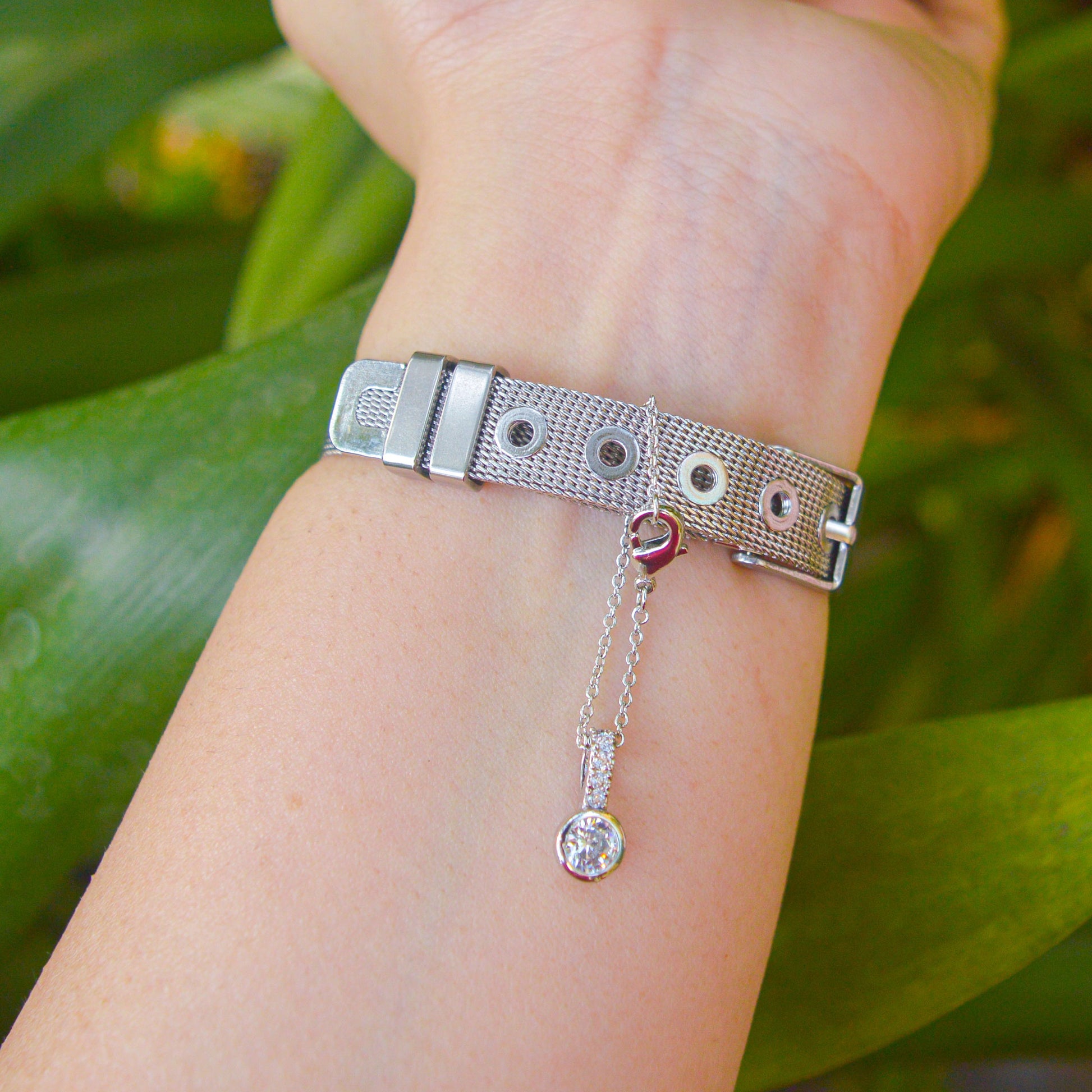 Material - Chain is made of Stainless Steel ( 15-17inches length) , Pendant is made of Anti Tarnish Alloy and Stones are Cubic Zirconia quality. Watch charm is Silver Color Plated.
