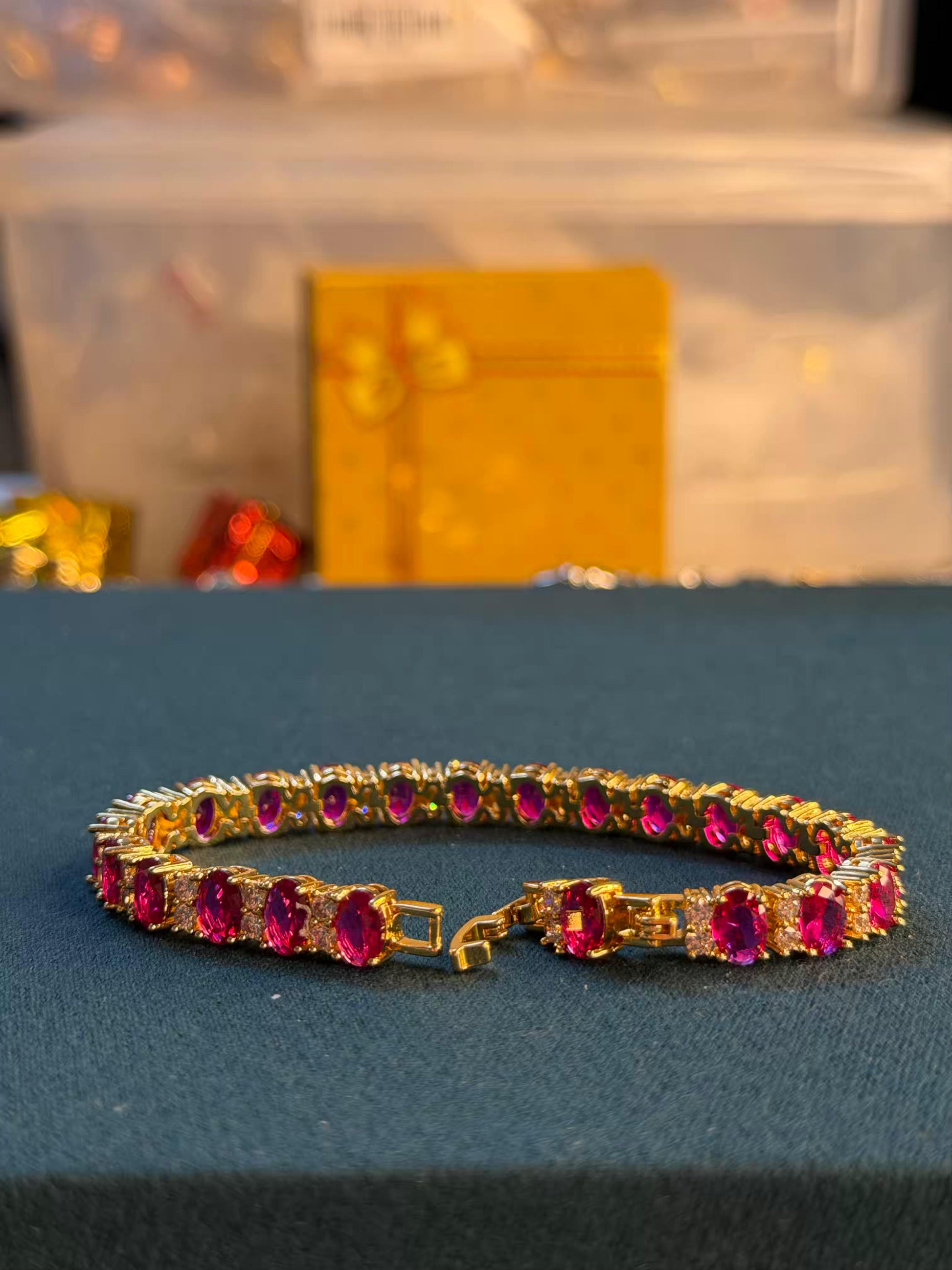 Ruby Pink Oval Gold Plated Tennis Bracelet