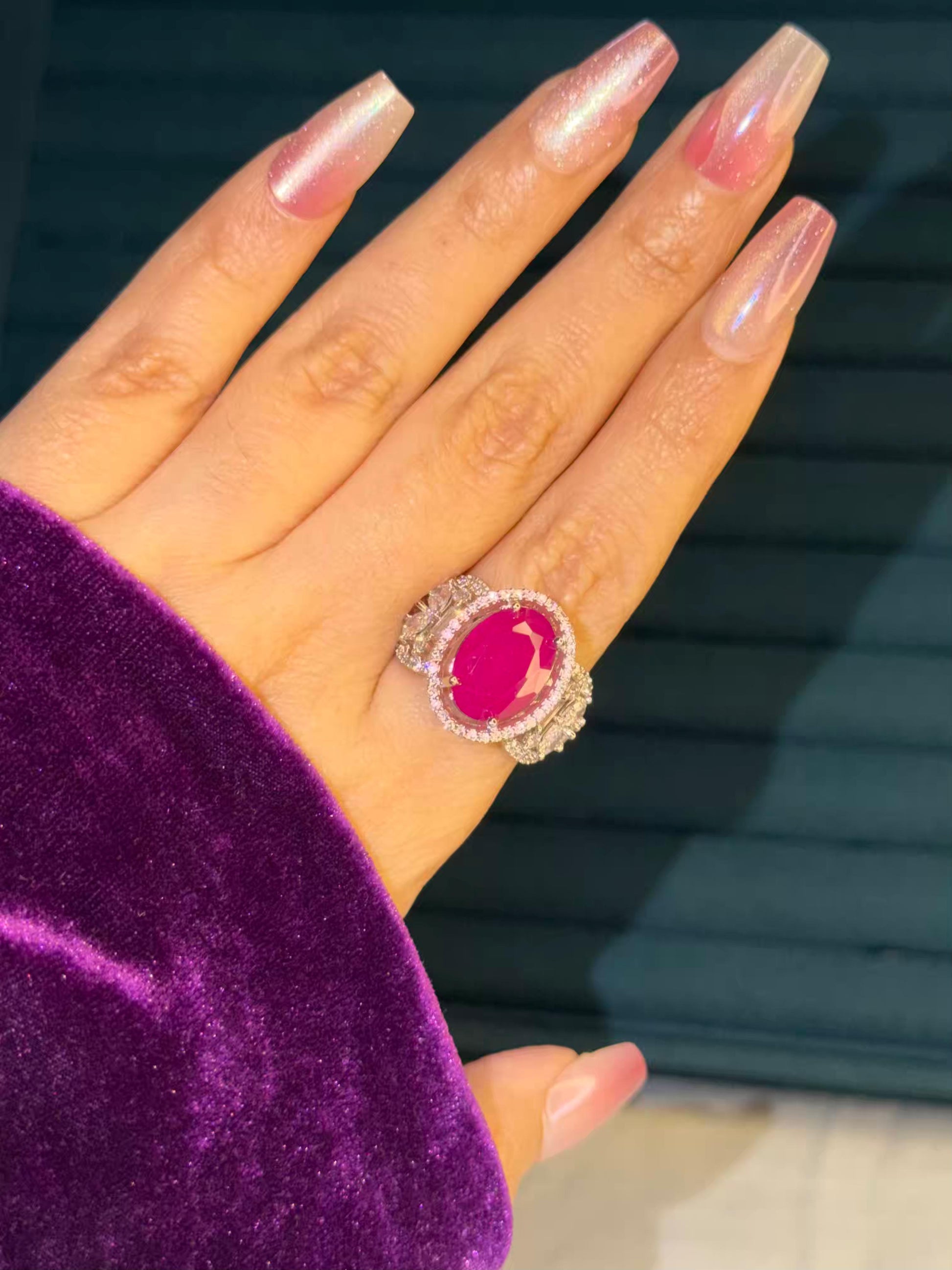 Ruby Pink Silver Plated Premium Ring (Adjustable)