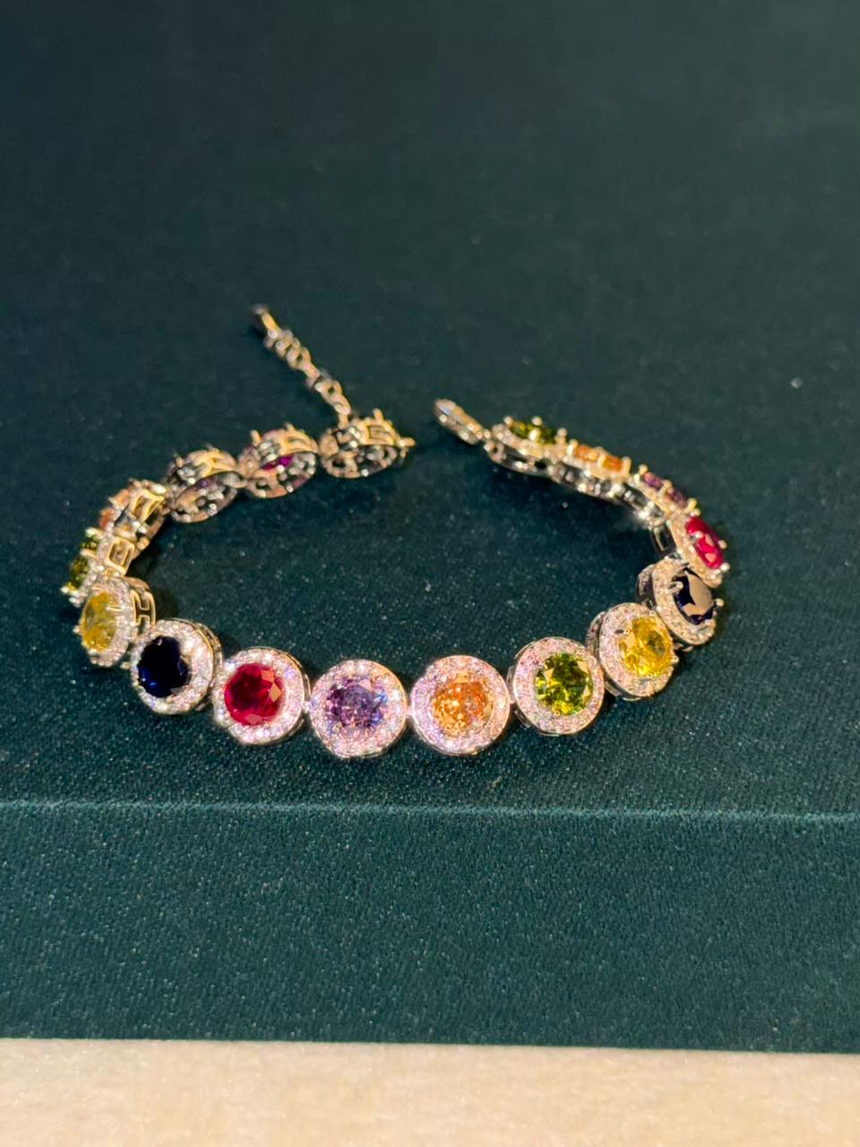 Multicolour Round Shape Silver Plated Tennis Bracelet