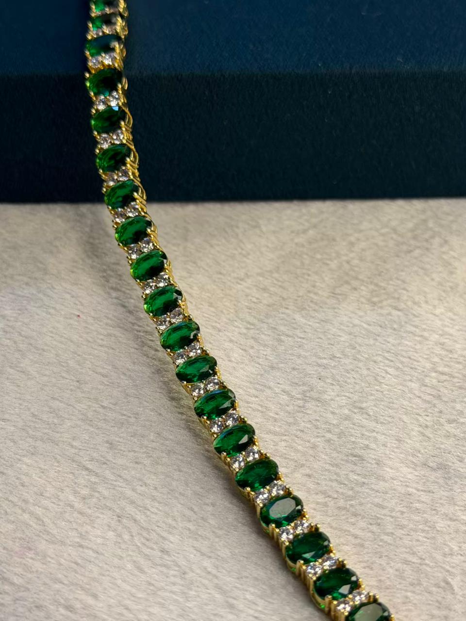 Emerald Green Oval Shape Gold Plated Tennis Bracelet