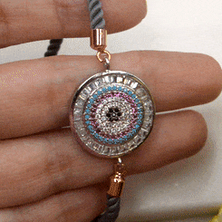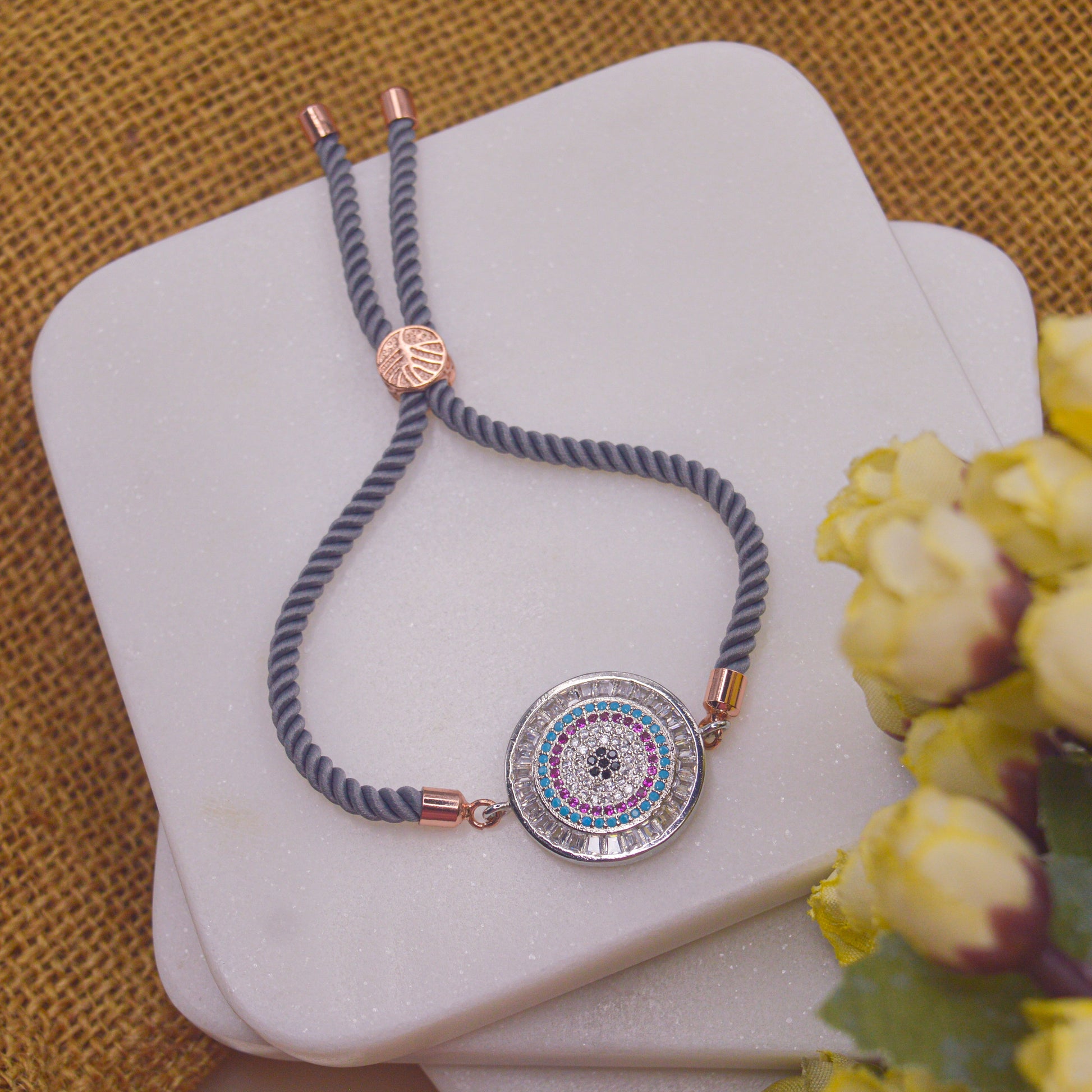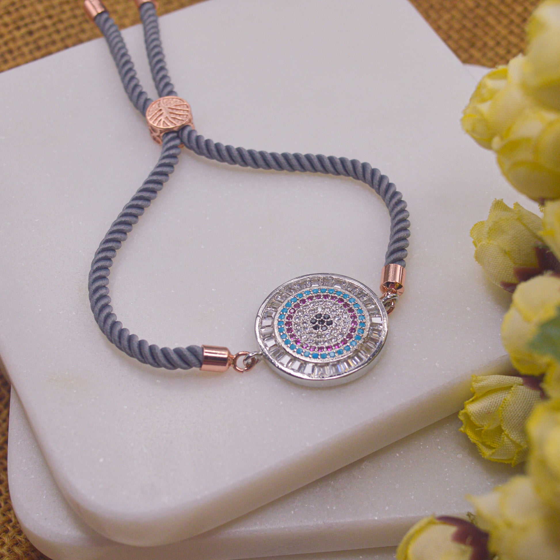 Silver Stylish Evil Eye Bracelet with Grey Band