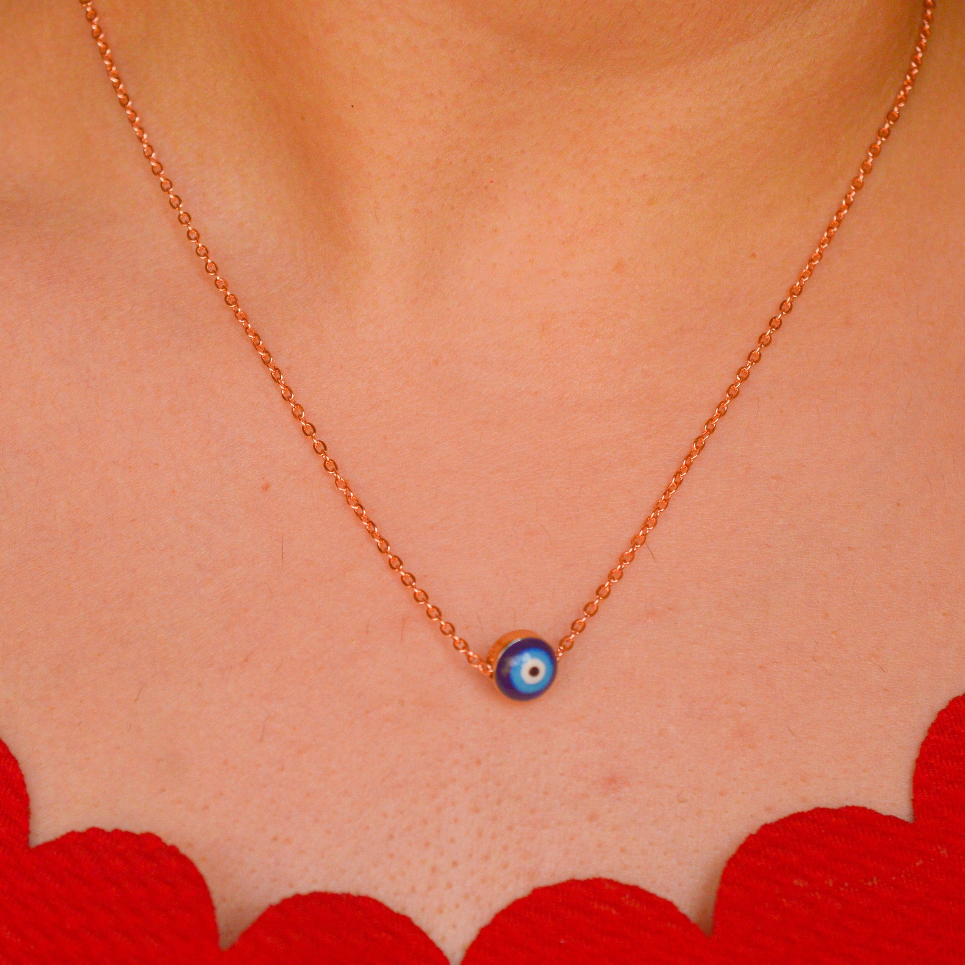 Small Blue Nazar Battu Evil Necklace - Rose Gold/ Gold / Silver ( Random Colour )