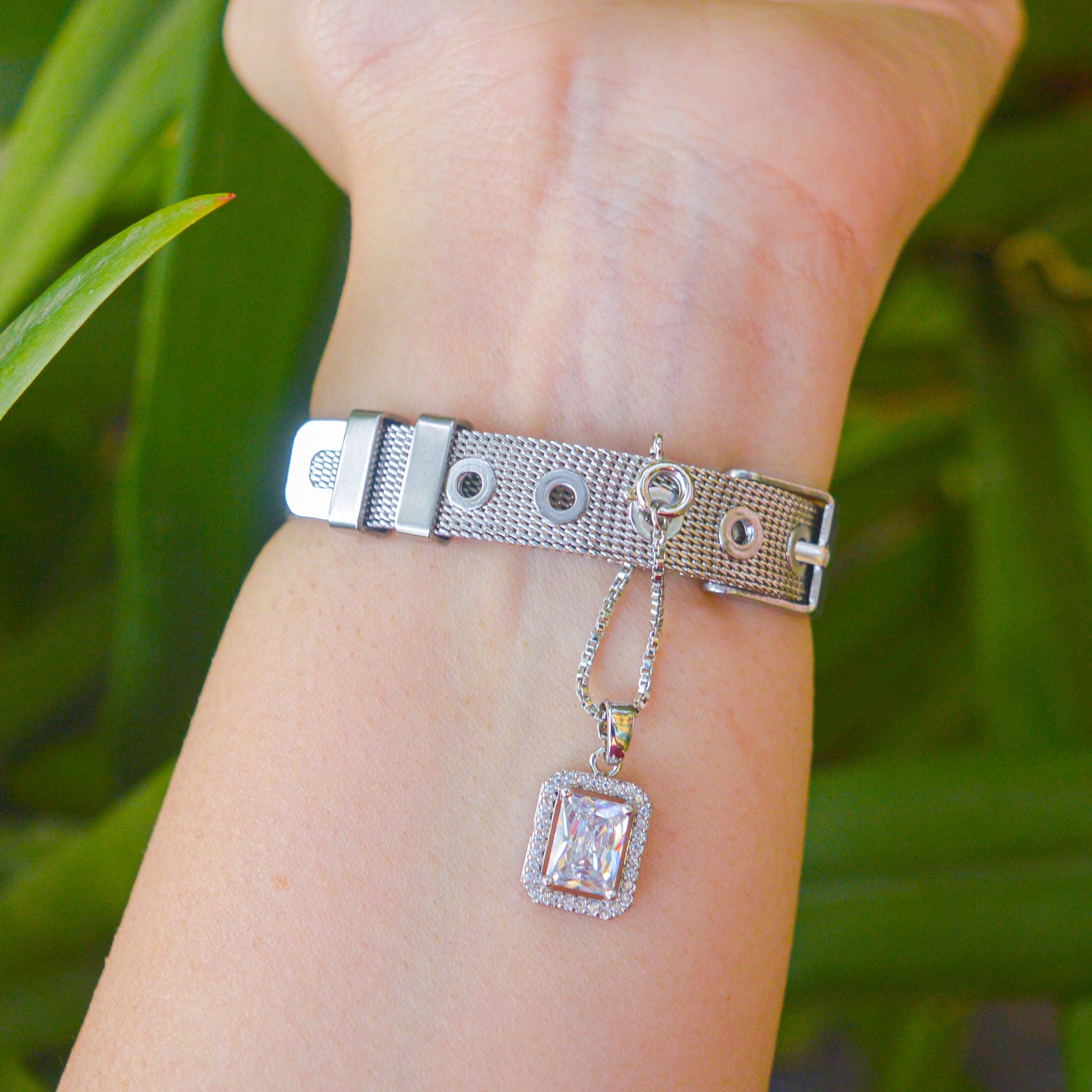 Material - Chain is made of Stainless Steel ( 15-17inches length) , Pendant is made of Anti Tarnish Alloy and Stones are Cubic Zirconia quality. Watch charm is Silver Color Plated.