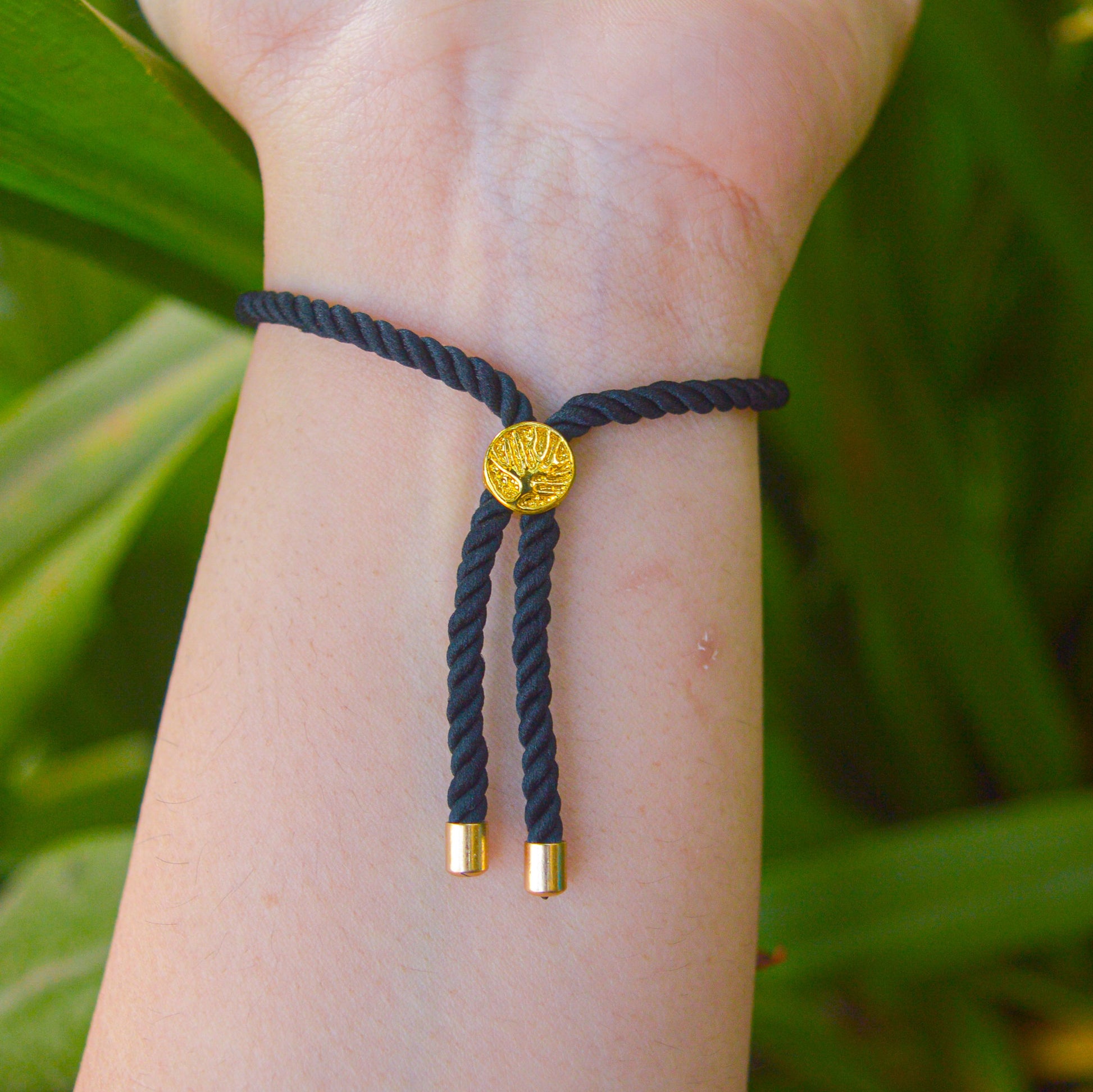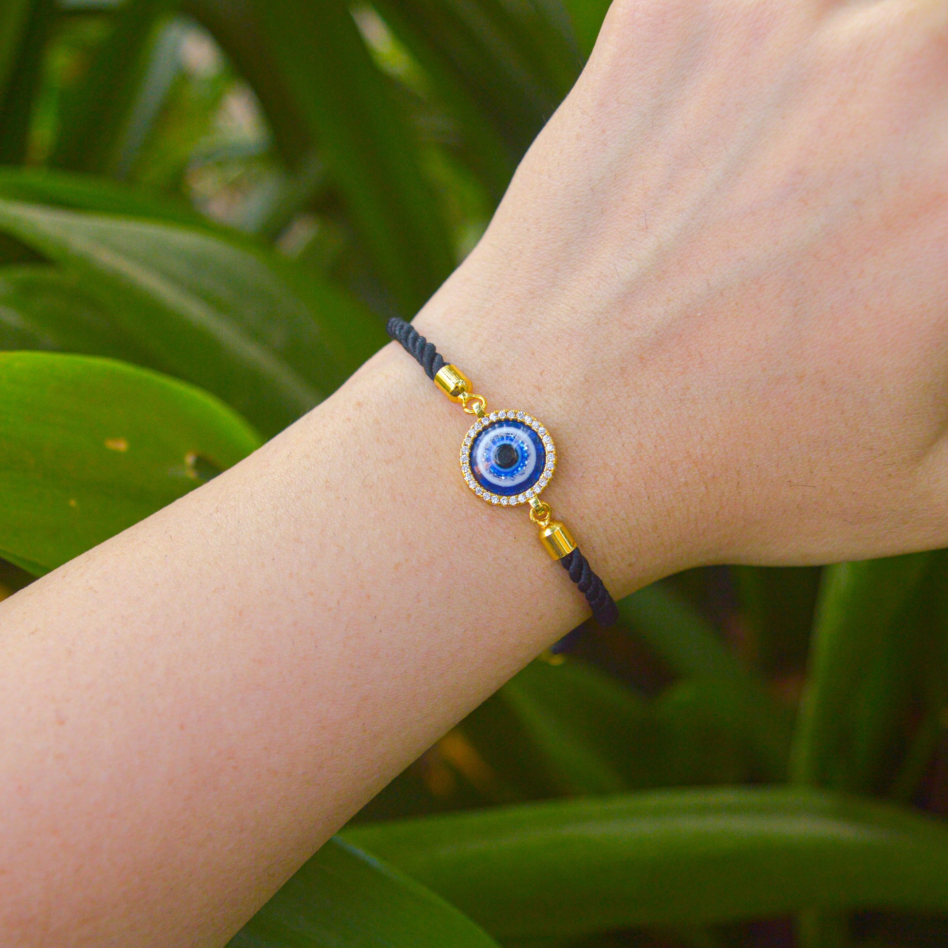 Unisex Gold Nazar Battu Studded Black Band Bracelet ( Gold )