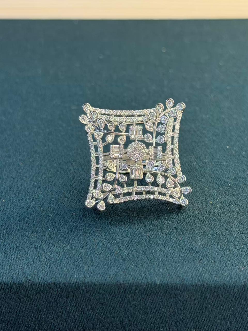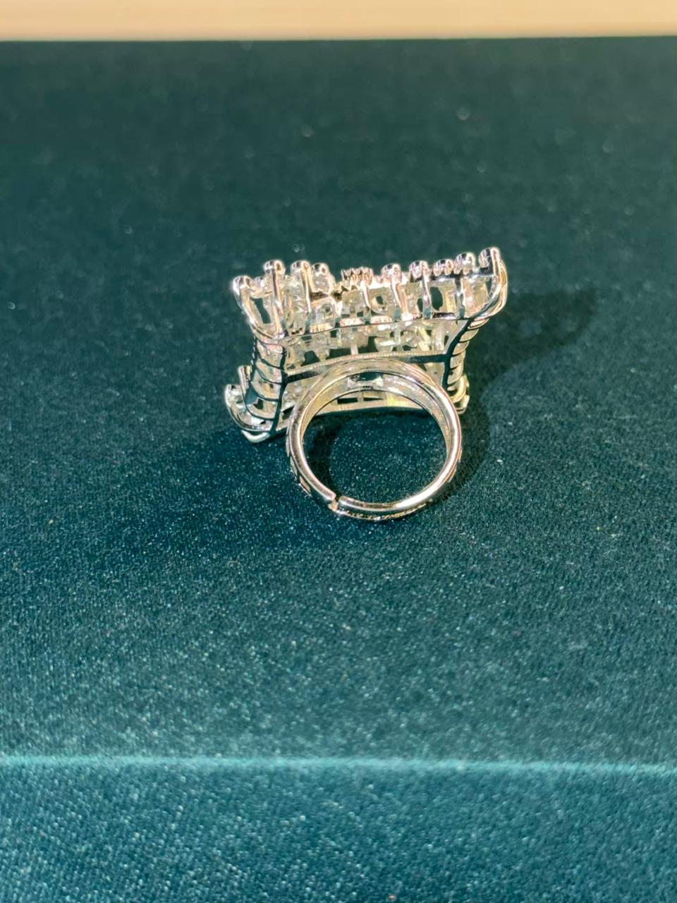 White Stone Architectural Design Silver Plated Ring Size Adjustable