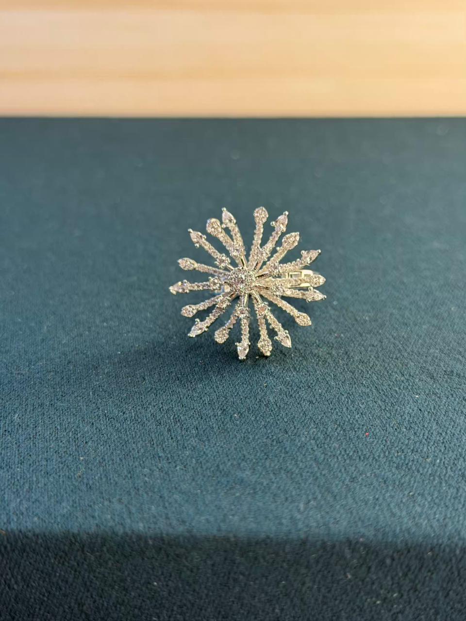 White Stone Cluster Star Design Silver Plated Ring Size Adjustable