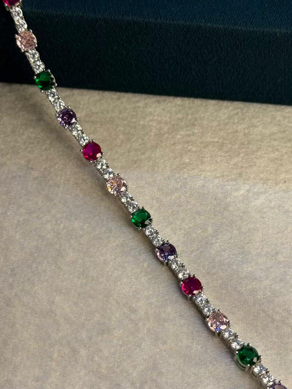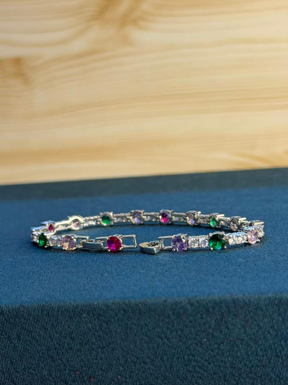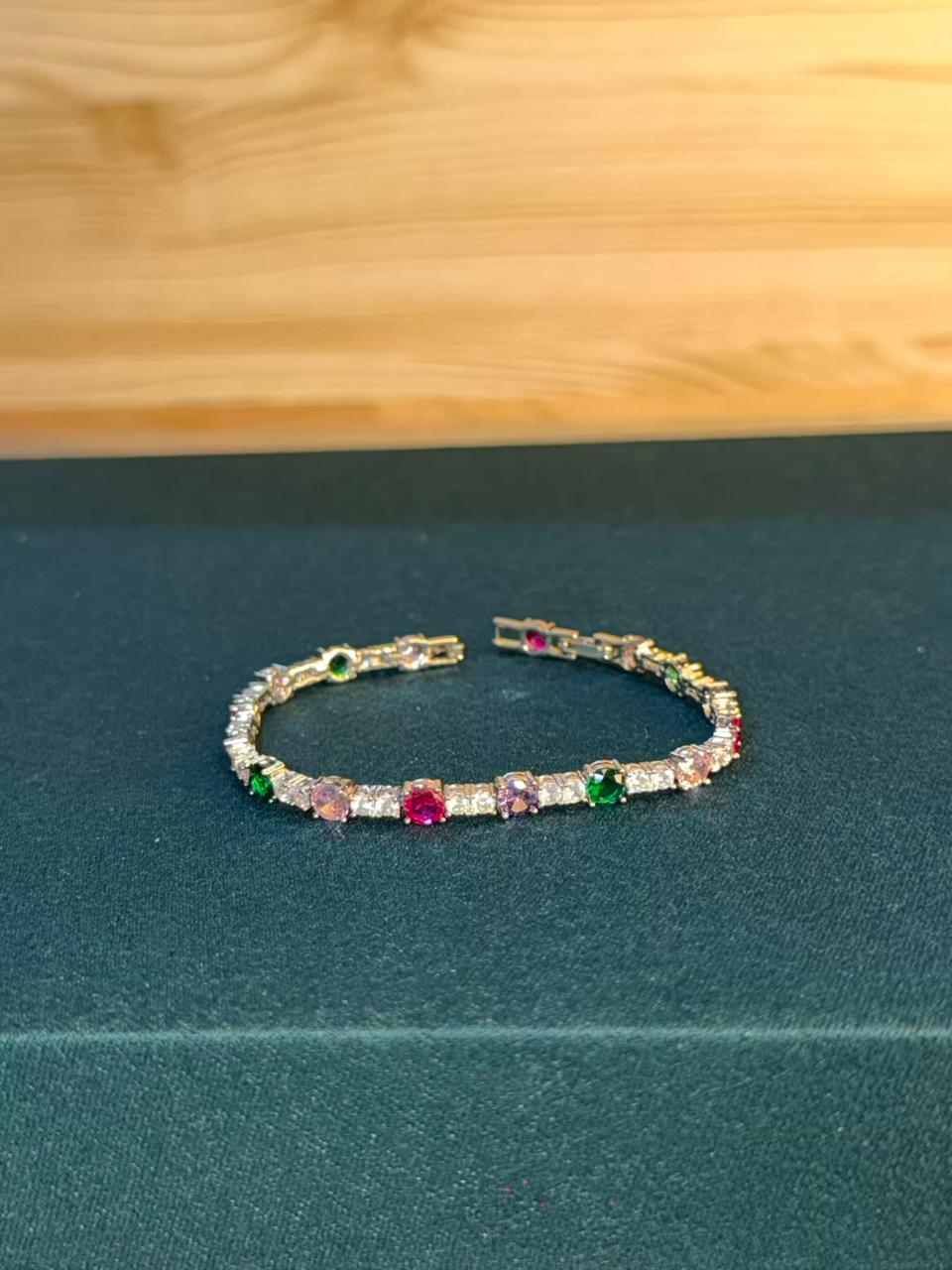 Multicolour Round Shape Silver Plated Tennis Bracelet