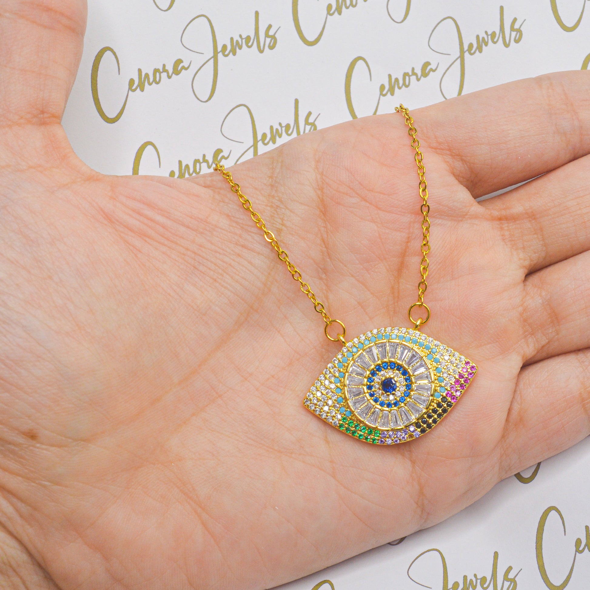 Material - Chain is made of Stainless Steel ( 15-17inches length) , Pendant is made of Anti Tarnish Alloy and Stones are Cubic Zirconia quality.