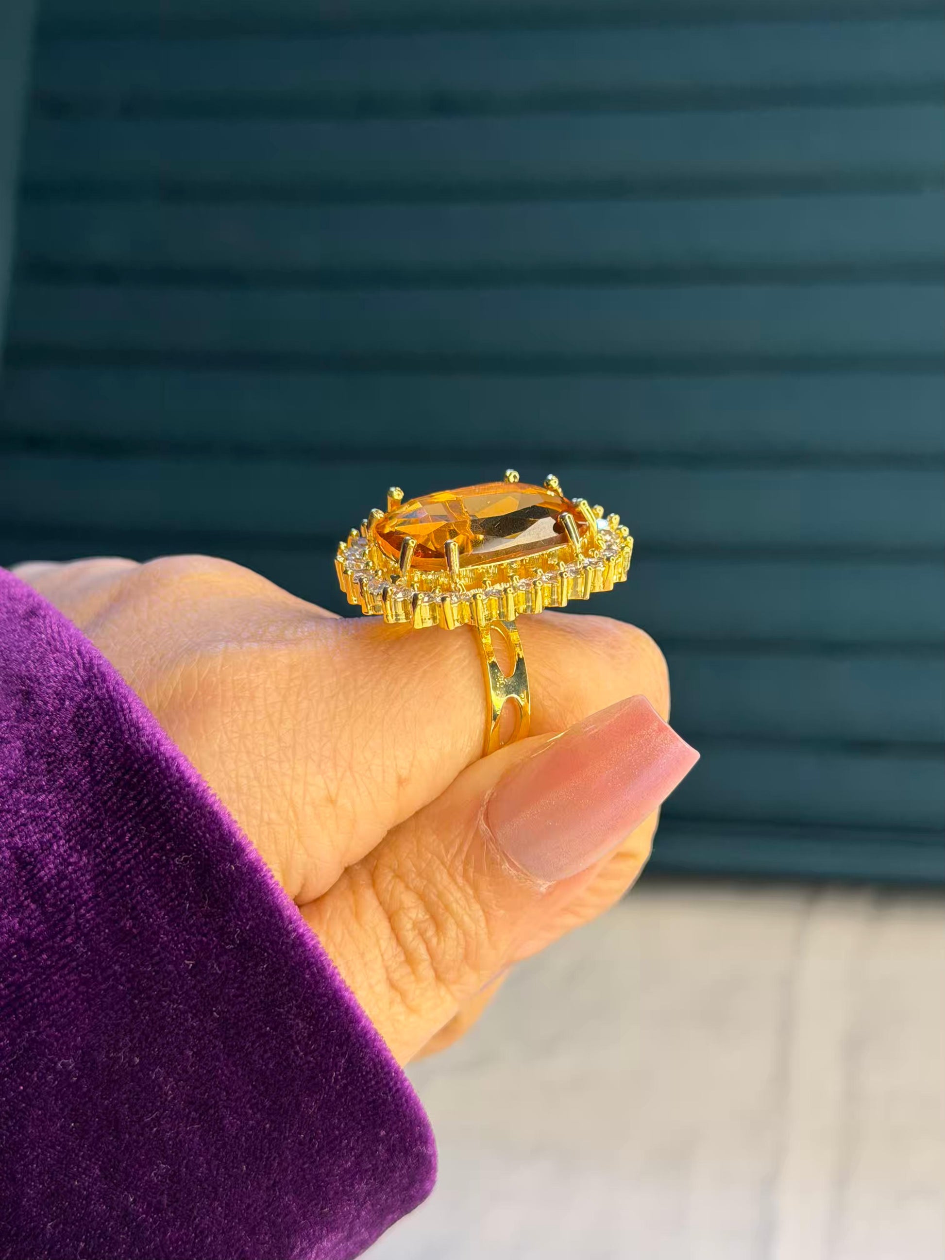 Yellow Big Stone Stetment Gold Plated Premium Ring (Adjustable)