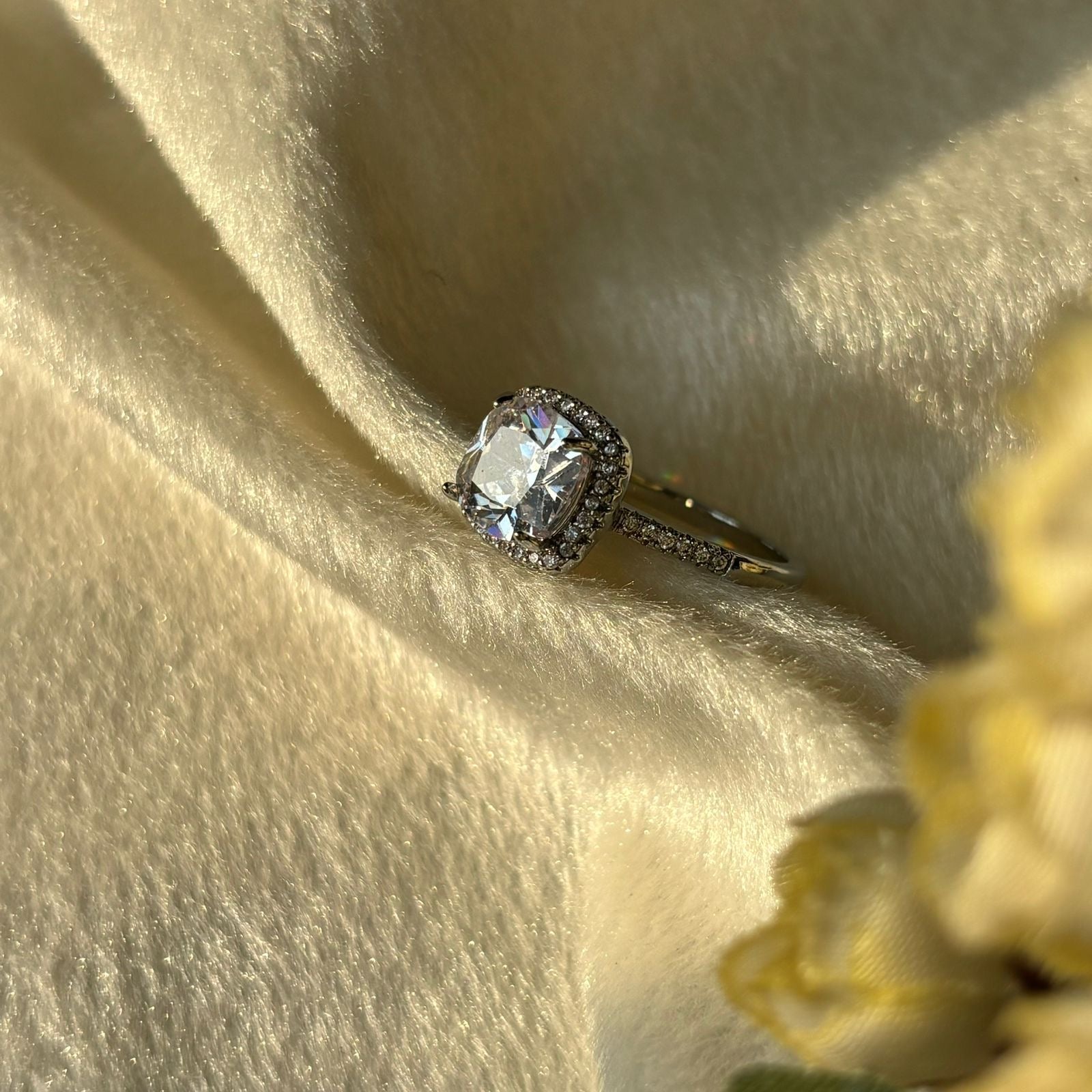 Zues Cushion Diamond Solitaire Ring ( Silver )